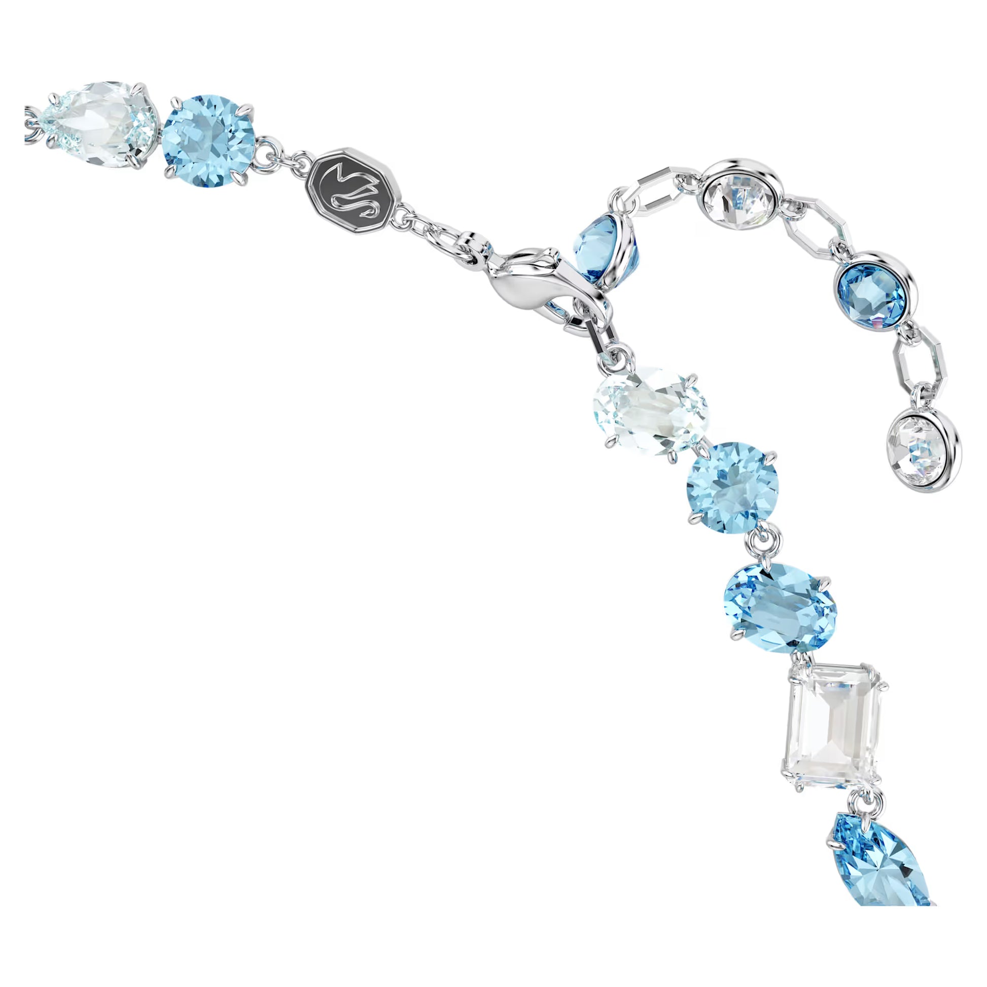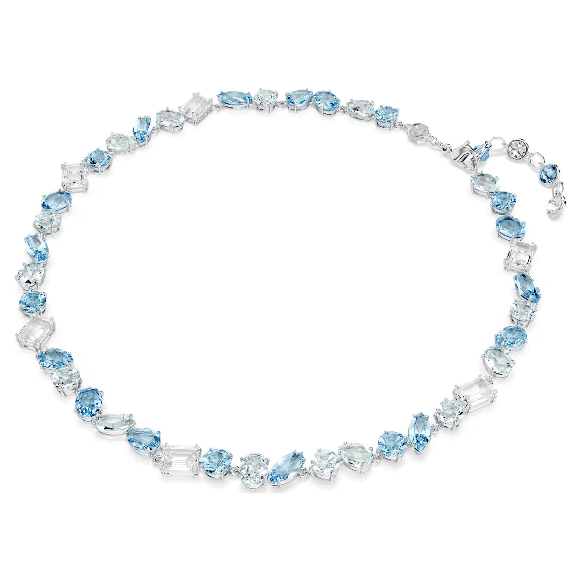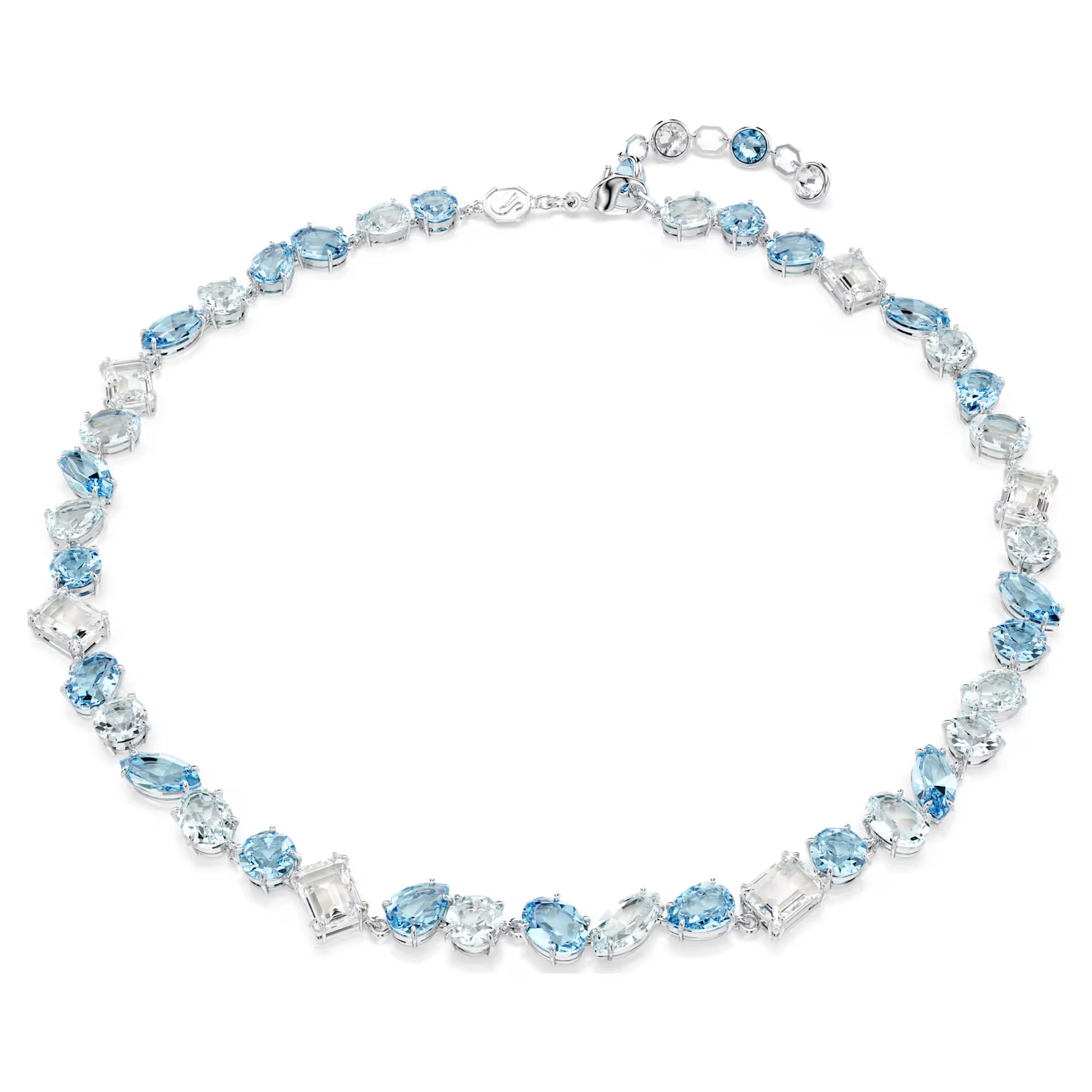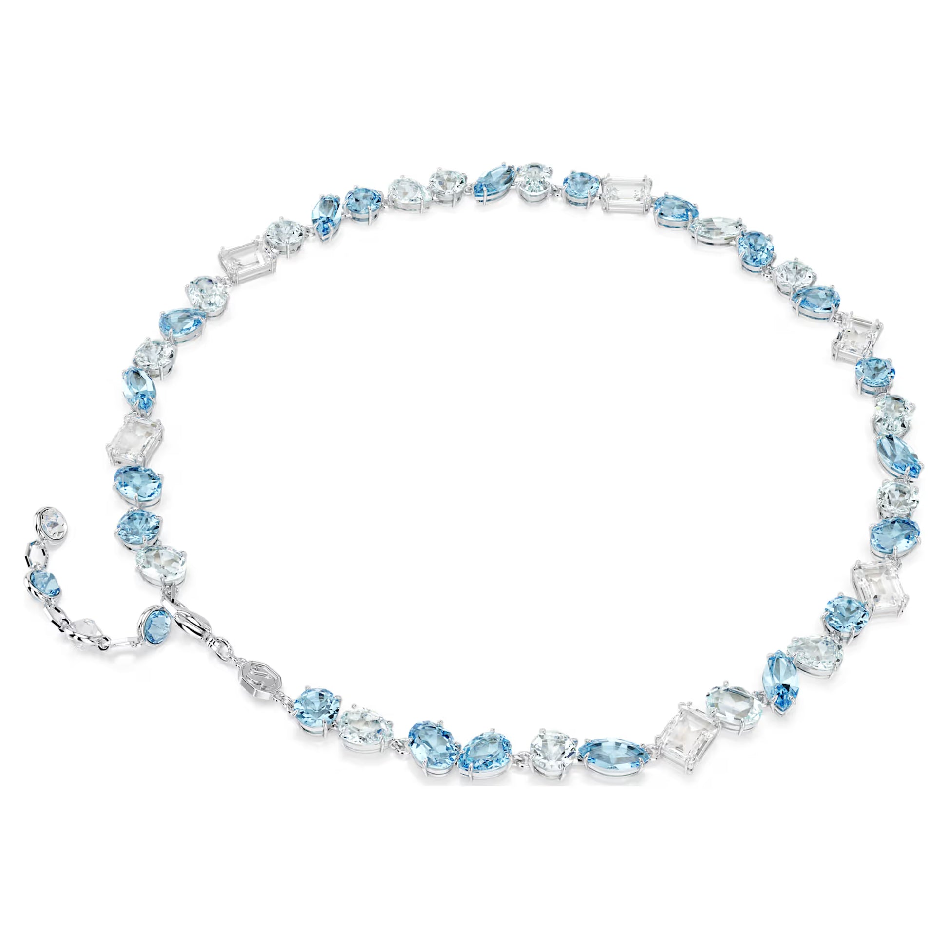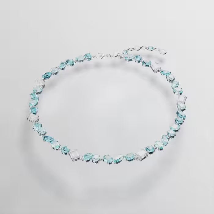 Gema Necklace, Mixed Cuts, Blue, Rhodium Plated