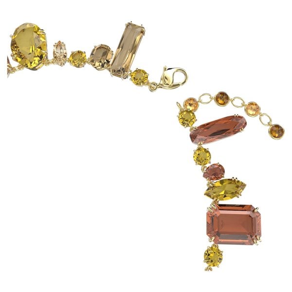 This necklace is expertly formed from an array of crystals in mixed classic cuts, assembled in an unexpected formation. Finished with a gold-tone plated setting, highlighting its warm hues and rich yellow tones, this necklace makes a joyful and mood boosting statement, however you might choose to wear it. This necklace is part of the Gema family, designed by Creative Director Giovanna Engelbert for Collection I.
