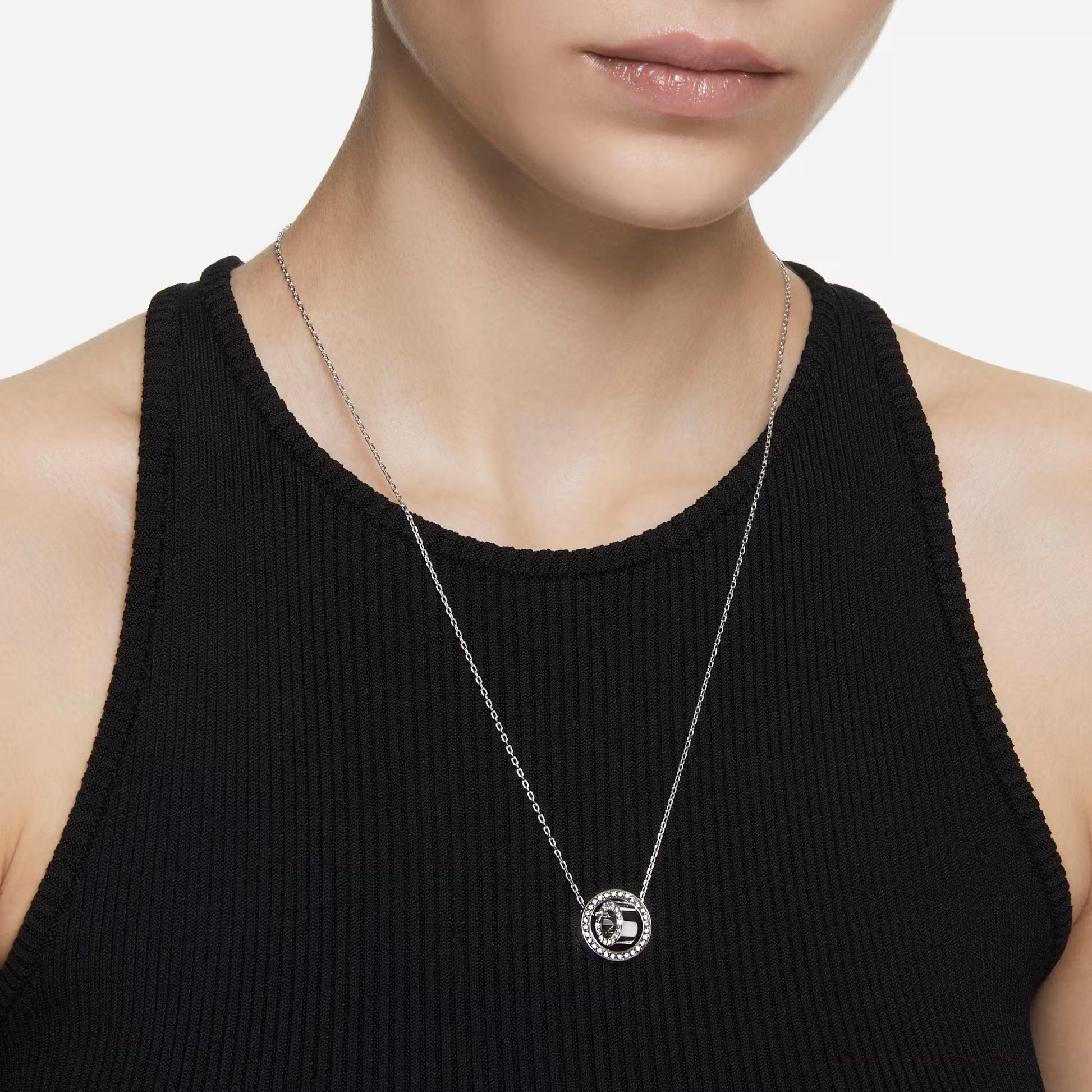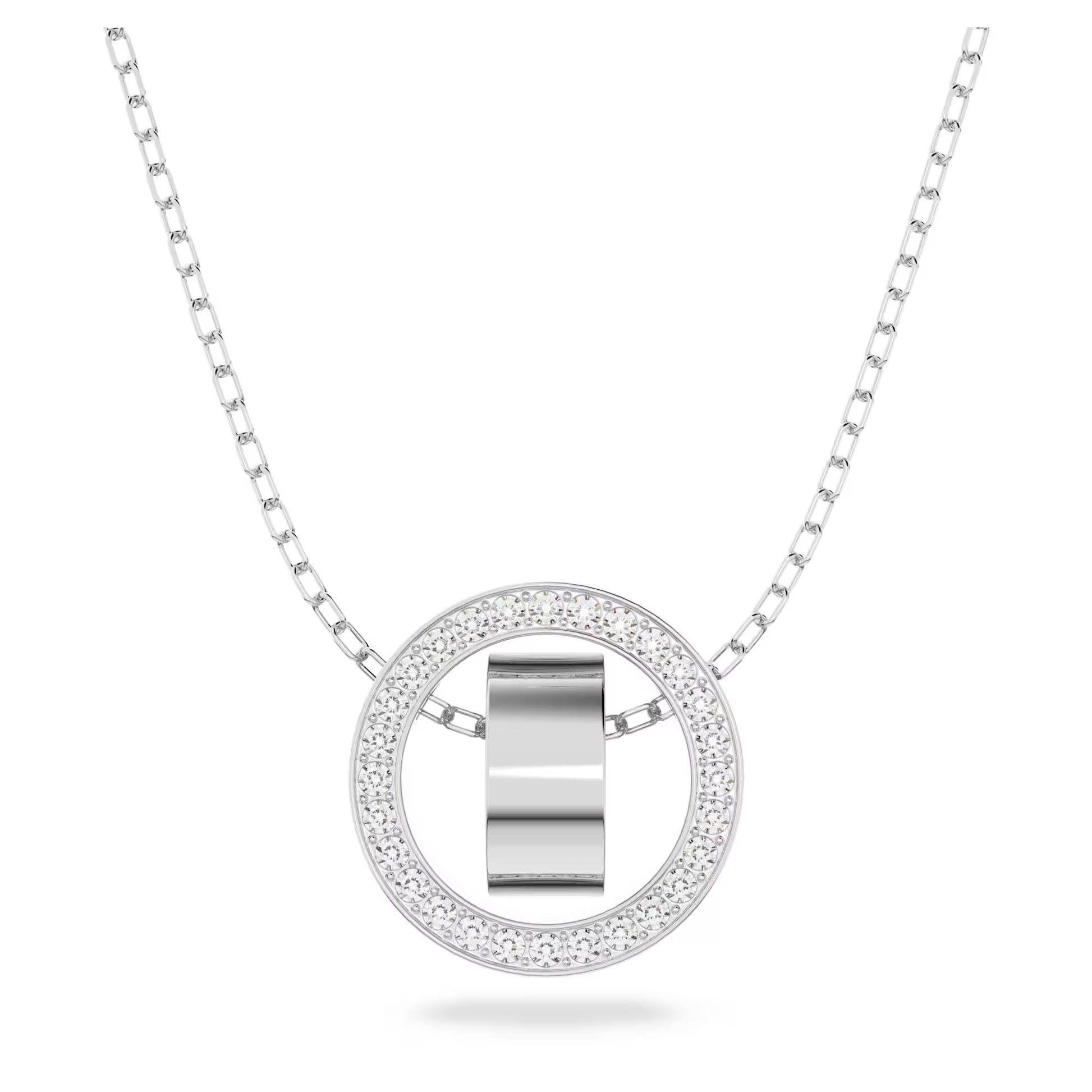 Simple sophistication makes this circular pendant an everyday choice. Showcasing Swarovski's meticulous craftsmanship, it features two rhodium plated circles embellished with shimmering crystal pavé for a memorable addition to your jewellery collection.