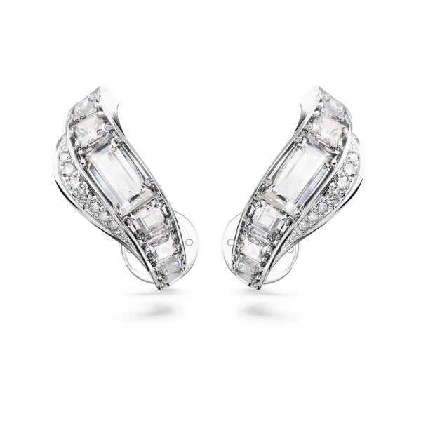 Hyperbola Clip Earrings, Mixed Cuts, White
