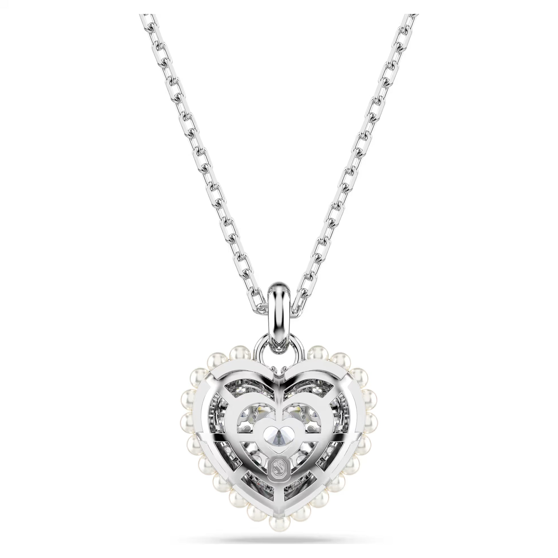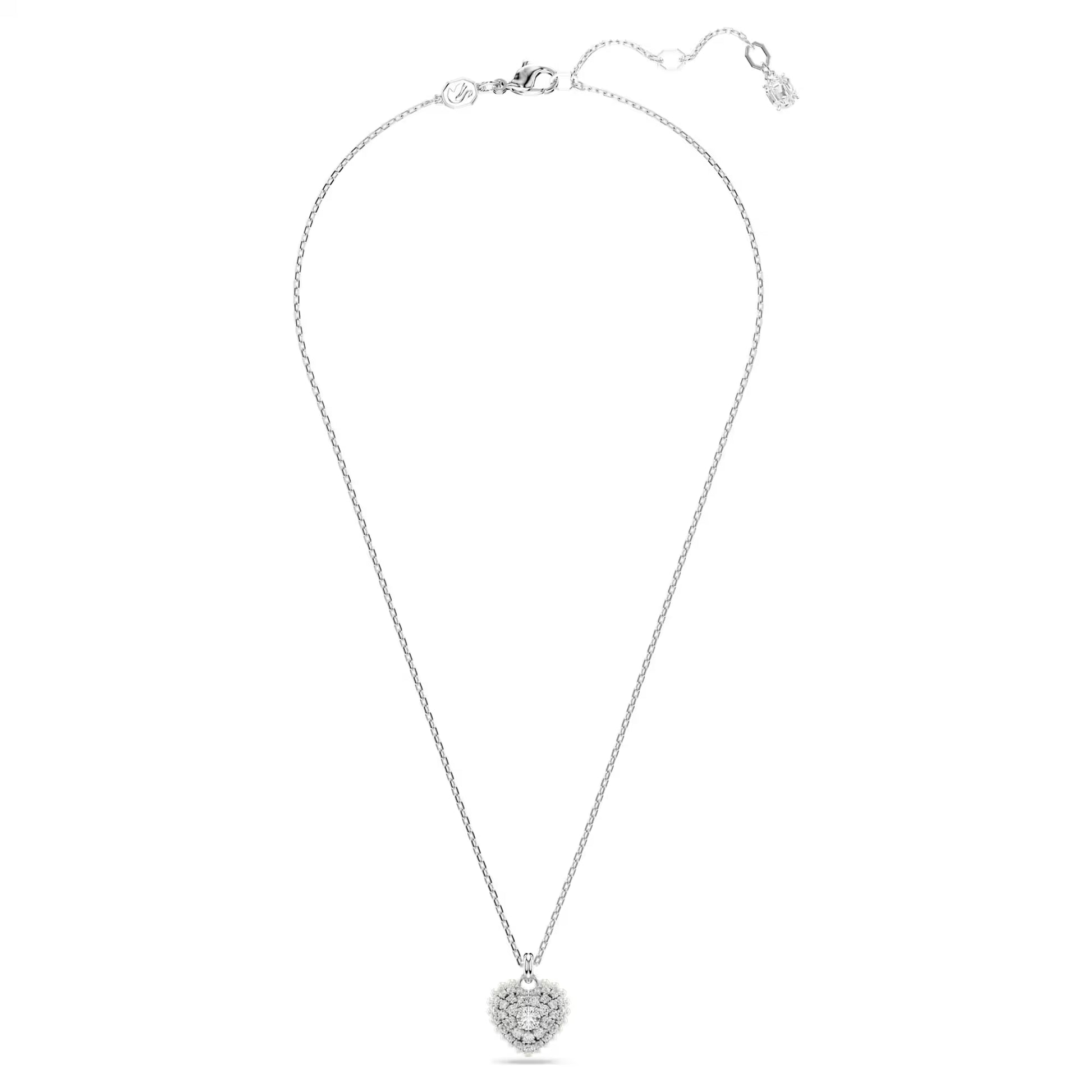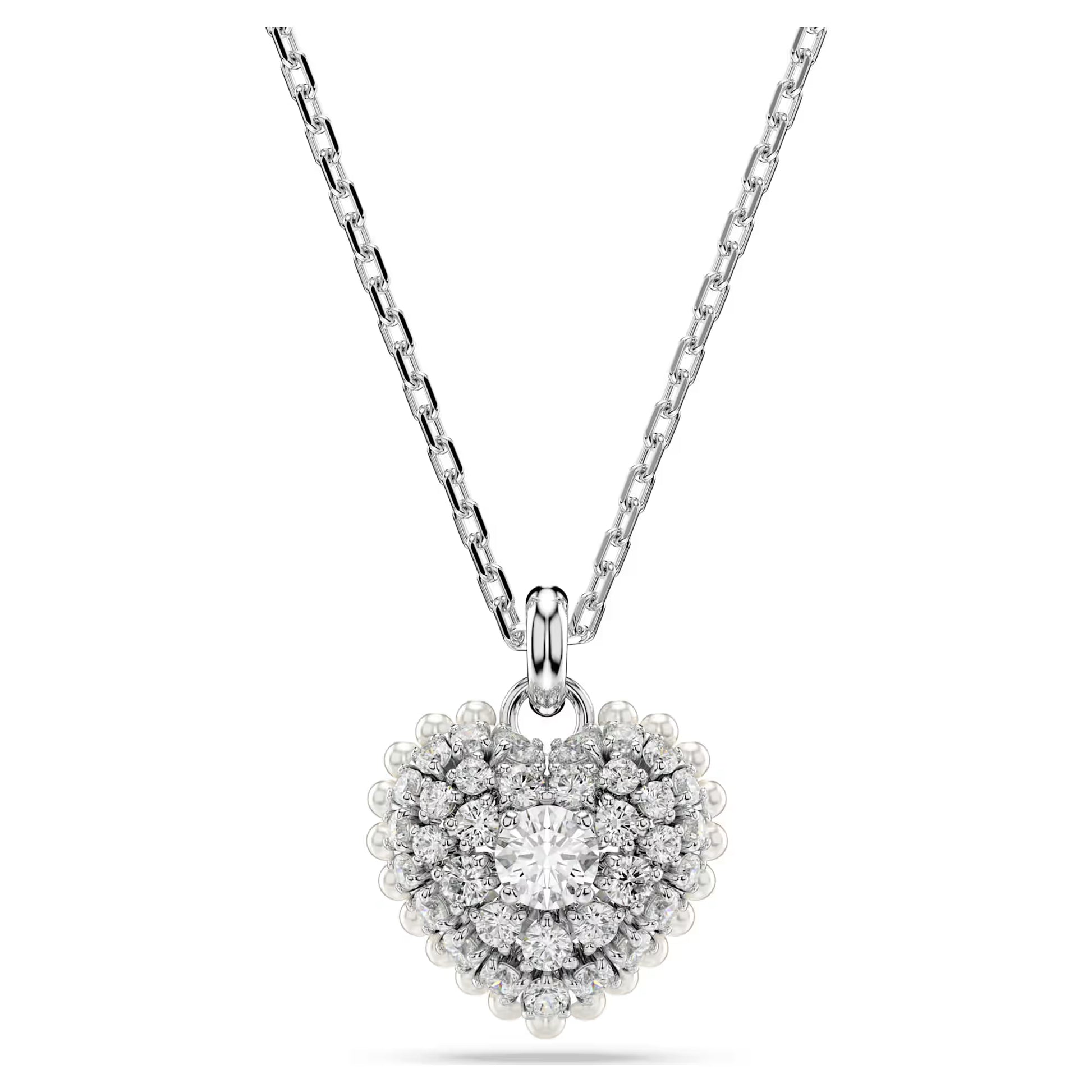Hyperbola Pendant, Heart, White, Rhodium Plated
