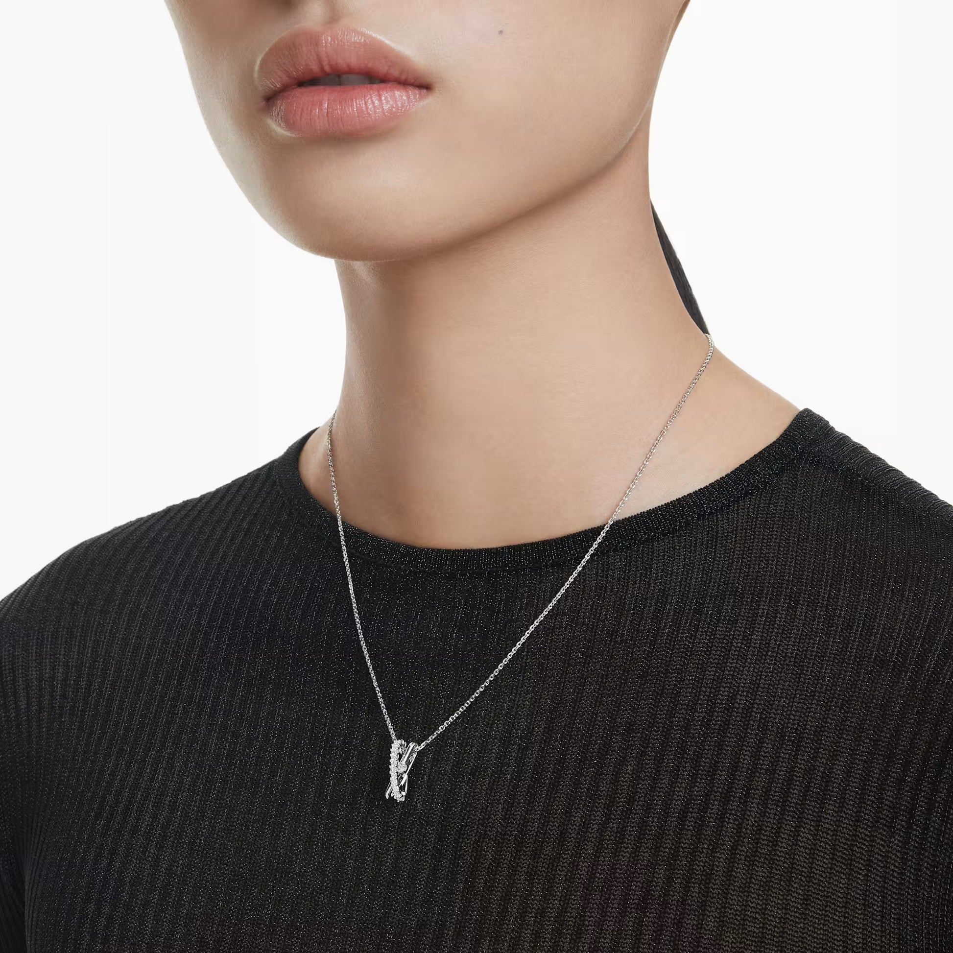 A stunning example of Swarovski savoir-faire, this captivating Hyperbola pendant is formed from two rhodium plated bands, with one side adorned with clear Swarovski Zirconia in a prong setting. For maximum radiance, a single oval-cut Swarovski Zirconia is placed at the centre. A sublime piece that pairs beautifully with a matching bangle.