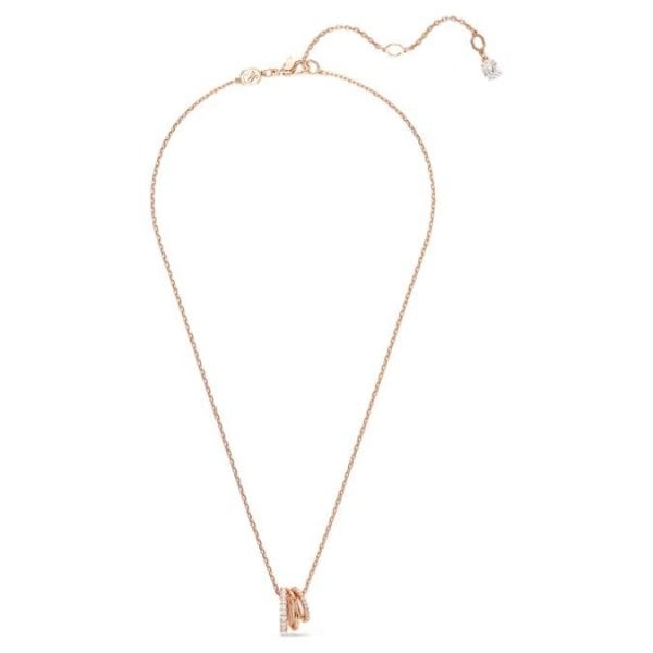 The details define this exquisite Hyperbola pendant. Suspended from a delicate chain, the jewellery features three mini hoops in rose gold-tone and rhodium plating, enhanced with round- and square-cut Swarovski Zirconia in a prong setting. Layer with mixed metals to elegantly subvert expectations.