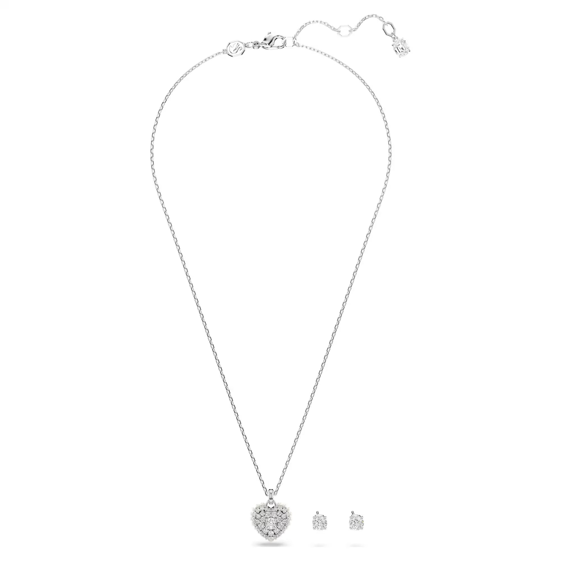 Let your love shine with this matching jewellery from the expressive Idyllia family. Along with a pair of round studs crafted from clear Swarovski Zirconia, the set includes a rhodium-plated pendant, created with a cage design for maximum volume. To enhance the domed effect, it is adorned with round clear Swarovski Zirconia, set in place using the dazzling chatonnage technique. A perfect gift for a loved one, or to enhance your own everyday style.
