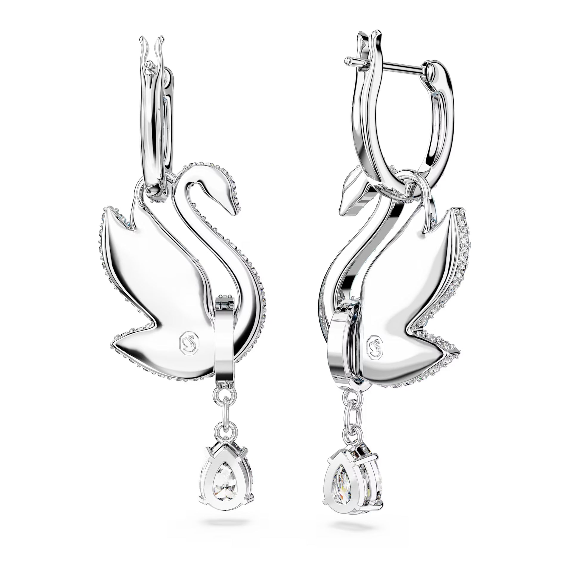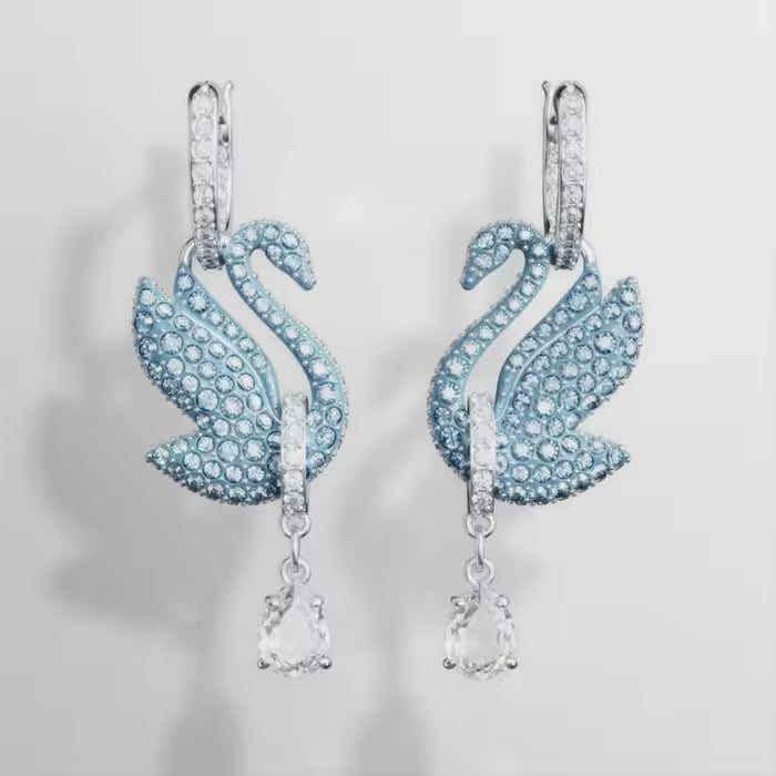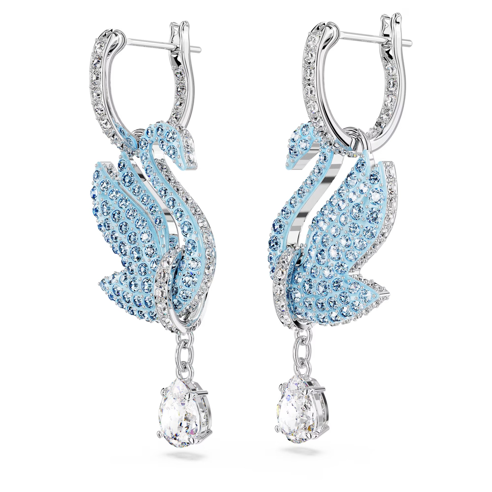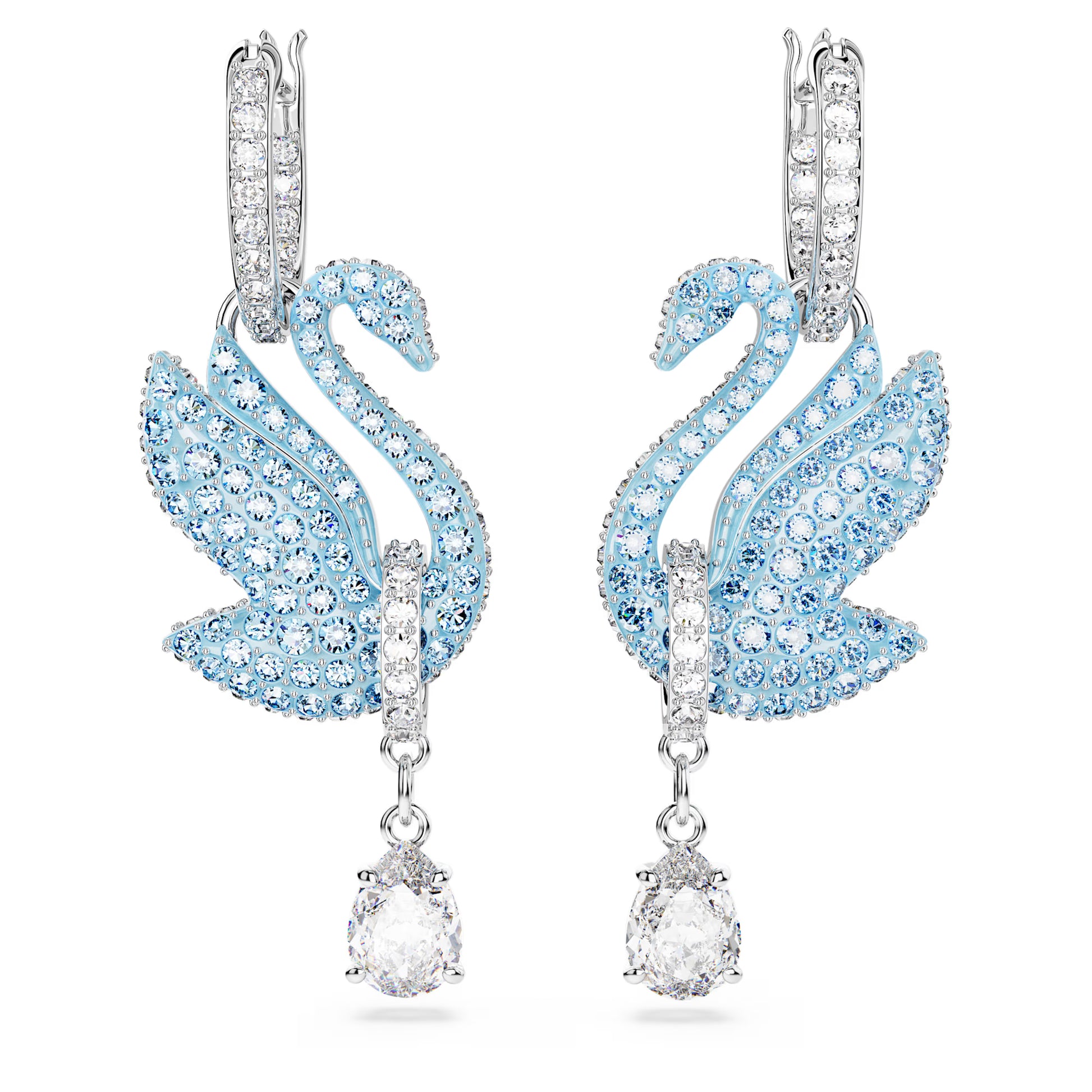 Swan Drop Earrings, Swan, Blue, Rhodium Plated