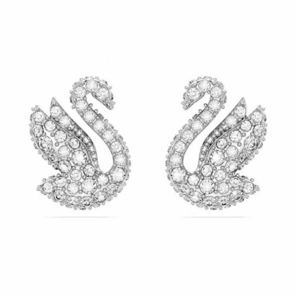 The iconic Swarovski Swan has been gracefully brought to life in this pair of stud earrings. Designed with wings aloft, ready to take flight, the swan is embellished with an all-over pavé of shimmering clear crystals on shining rhodium plating. Choose thi