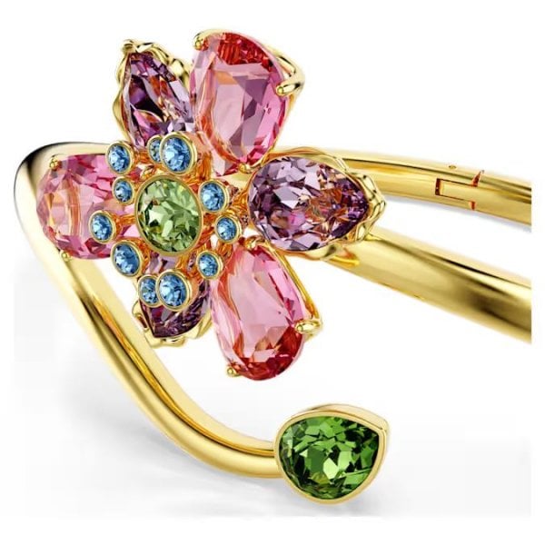 Bright, delicate and beautiful. This magical Idyllia bangle surrounds the wrist with a spiralling gold-tone plated stem and features a central flower motif, which is expertly crafted with a variety of crystals in different shapes and colours. A Wonderclick closure at the bottom ensures an easy fit. Wear this bangle alongside other Idyllia pieces whenever you need more joy in your day.
