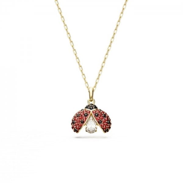 Celebrate your love of nature with this charming pendant. The gold-tone plated design features a stunning ladybird made with an all-over pavé of red and black crystals. Showcasing Swarovski's signature savoir-faire, its wings reveal a single pear-shaped dancing stone inside, bringing the piece to life with continuous motion. Crafted to bring a little magic to any look.