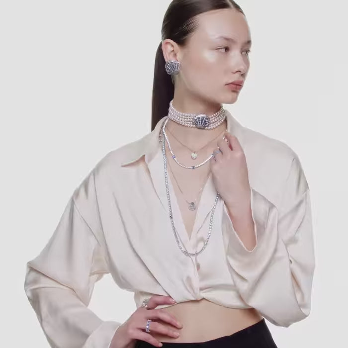 This marine-inspired pendant is a joyful tribute to the colour and spirit of the ocean. Worn on an elegant chain, the rhodium-plated design features a central shell motif, embellished with an array of clear Swarovski Zirconia and a bright blue central crystal. A tranquil and calming piece of jewellery to enhance your daily style.