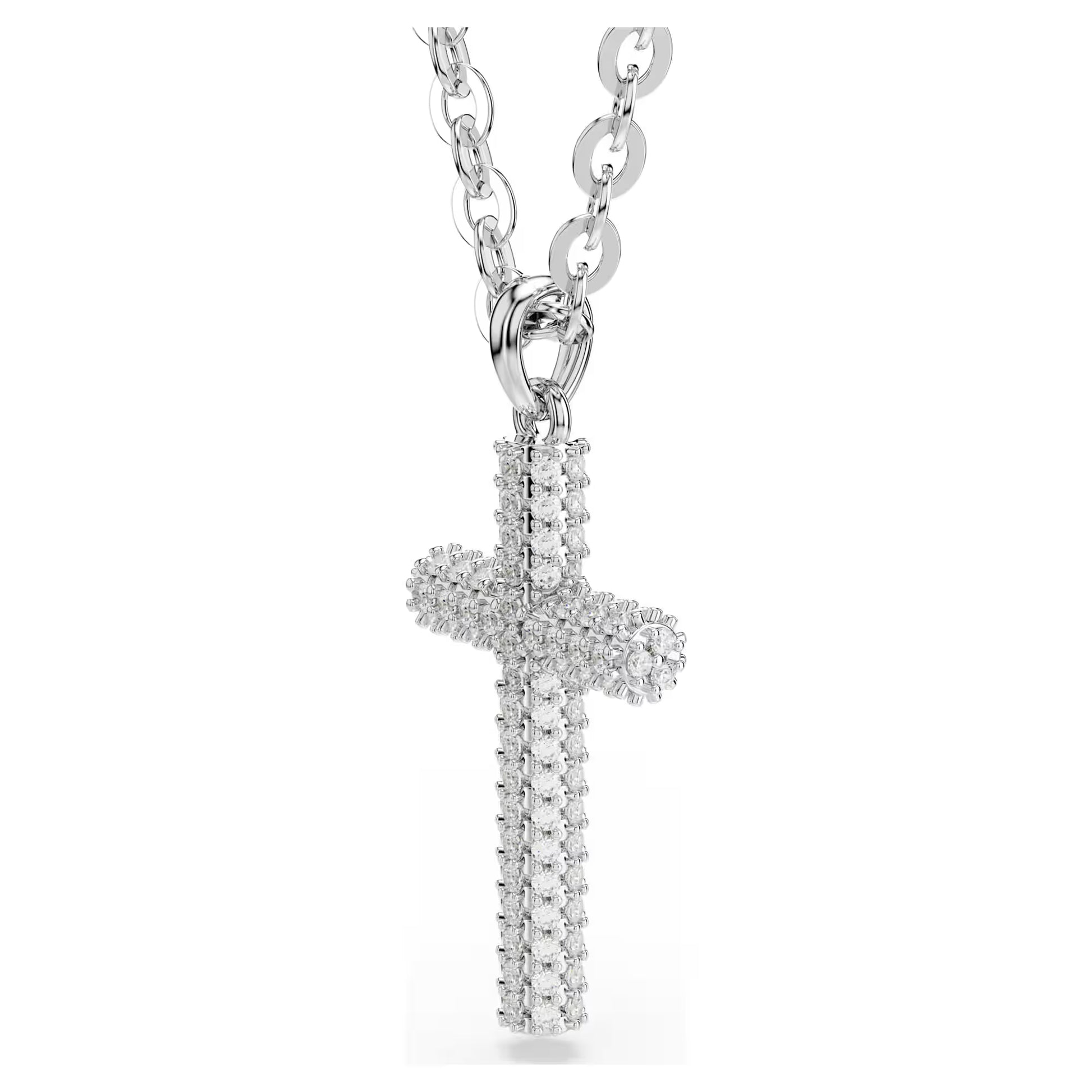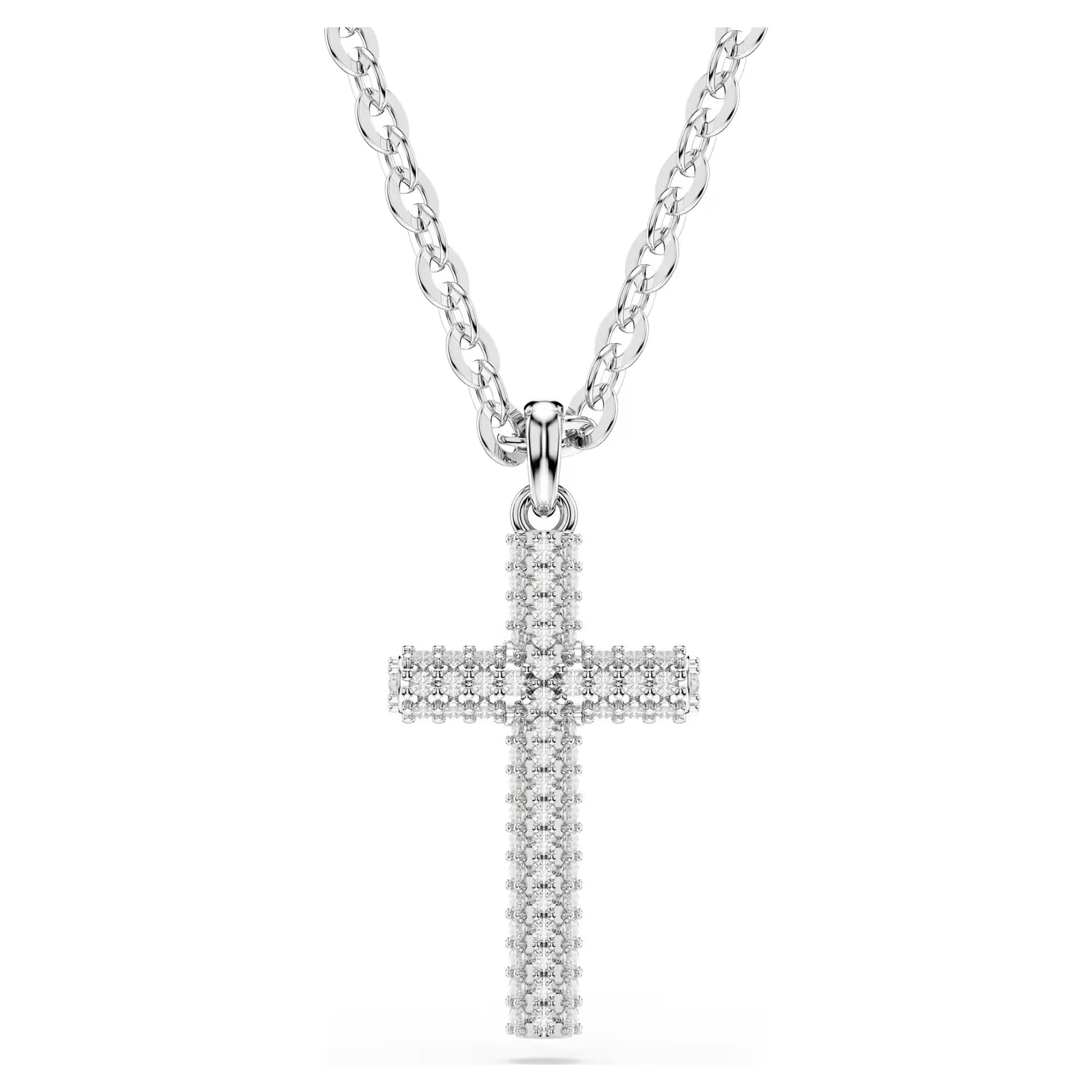 Insigne Pendant, Pavé, Cross, White, Rhodium