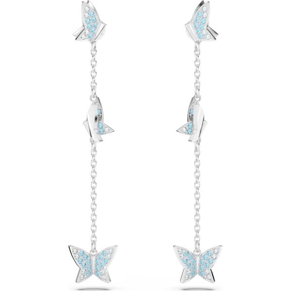 Lilia Drop Earrings, Butterfly, Blue, Rhodium Plat
