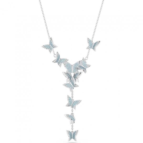 Lilia Y Necklace, Butterfly, Blue, Rhodium Plated