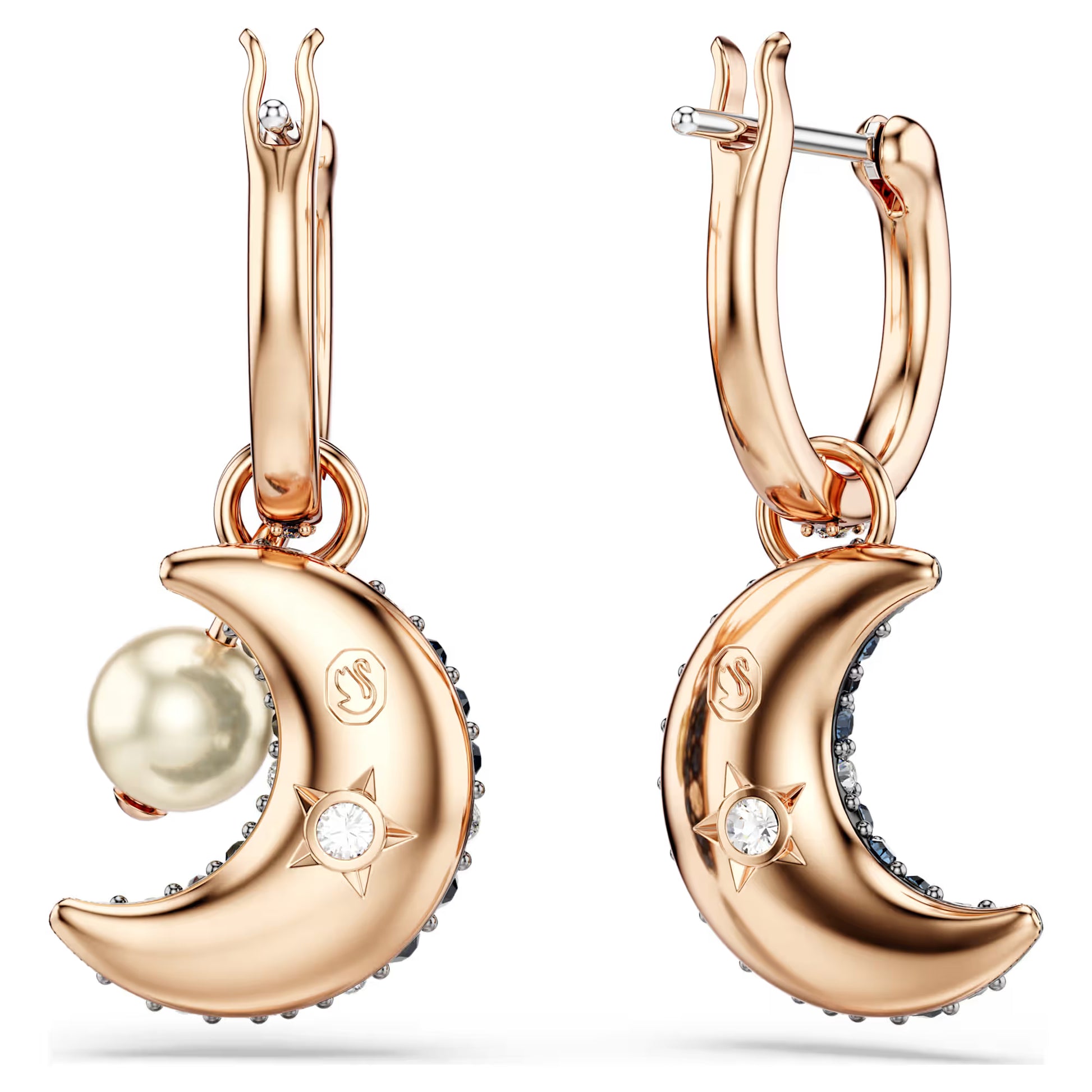 These radiant Sublima earrings are a chic tribute to the reflections and shadows of the moon. The rose gold-tone plated design features an elegant pair of crescent moons, each embellished with a pavé of crystals in dark tones, hanging from dazzling mini hoops. One earring holds a detachable pearl. A perfect choice, whatever phase of style you’re in.