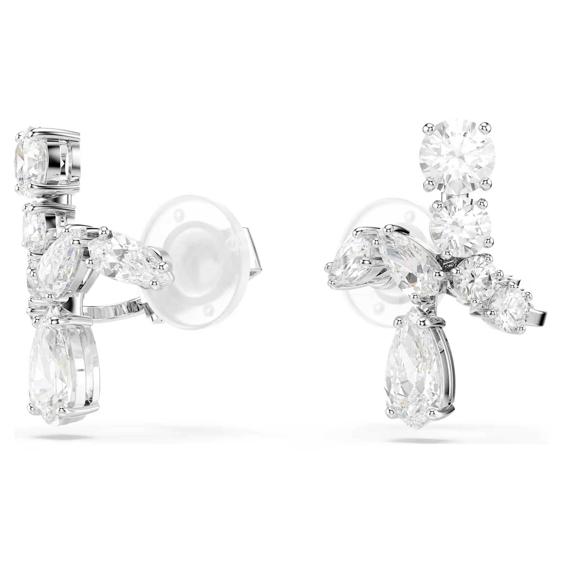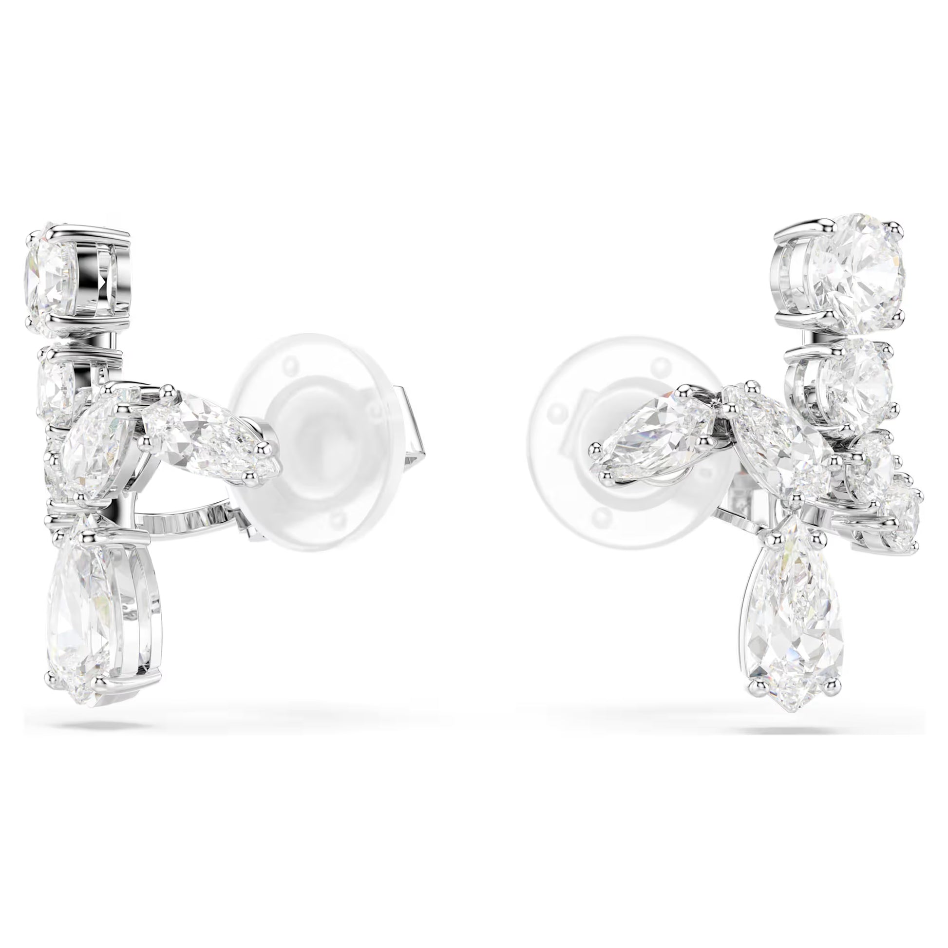 Matrix Clip Earrings, Mixed Cuts, White, Rhodium