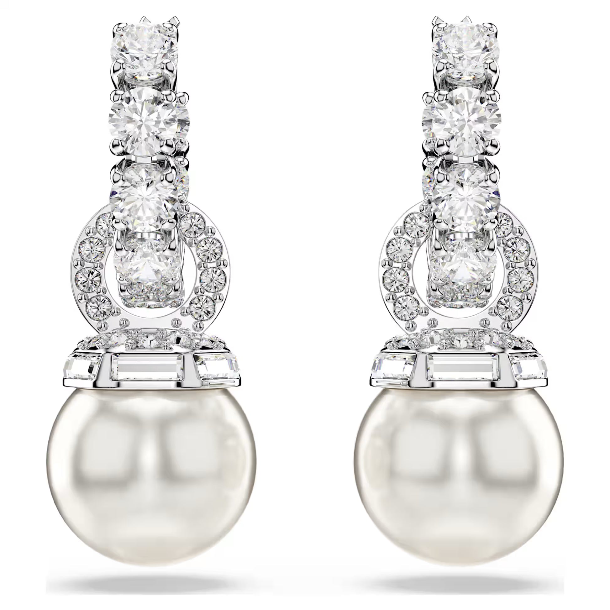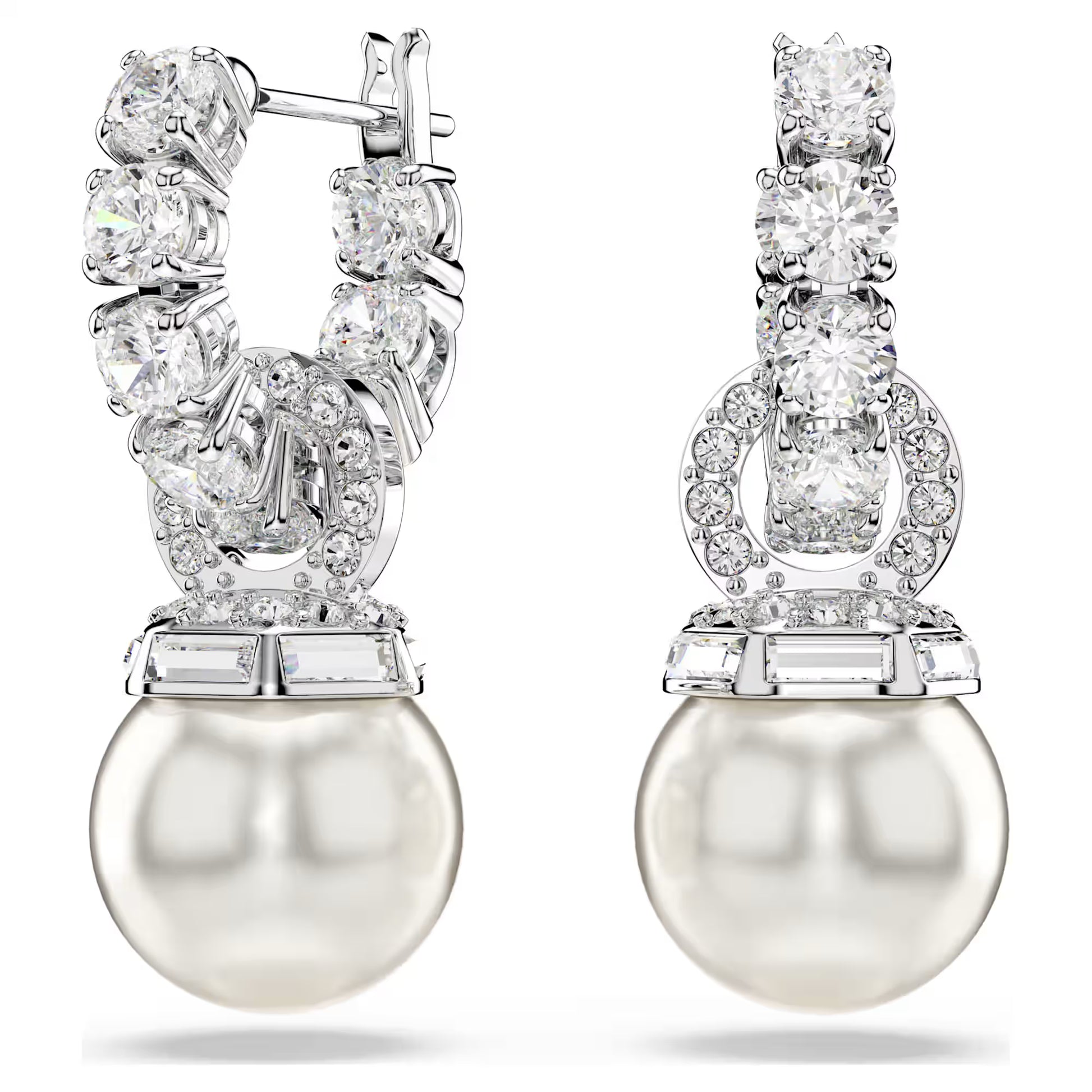 Matrix Drop Earrings, Crystal Pearl, Round Cut, White, Rhodium Plated