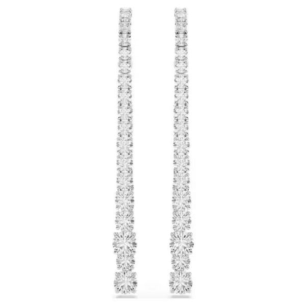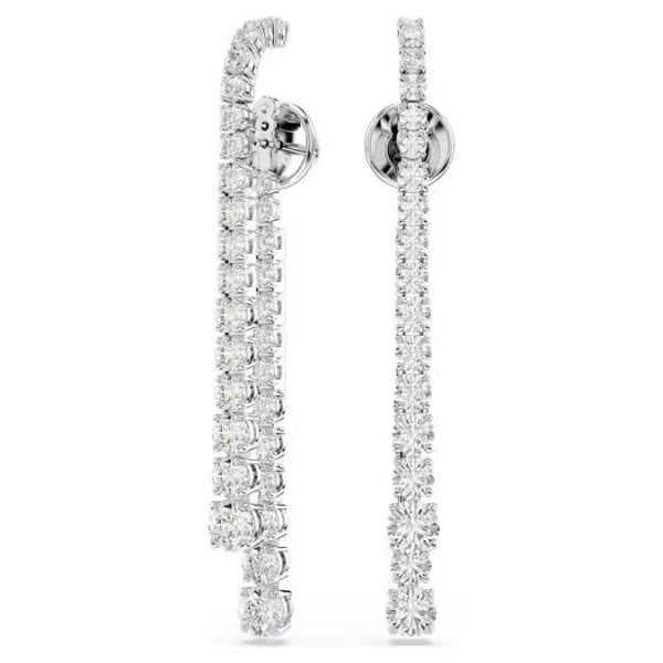These dramatic trails of light are the perfect showcase of Swarovski’s illuminating style. Each rhodium plated piece features two strands of Swarovski Zirconia, presented in a clear hue and a rising gradient of sizes. The effect is both elegant and bold, giving you an expressive pair of pierced earrings for any special occasion.