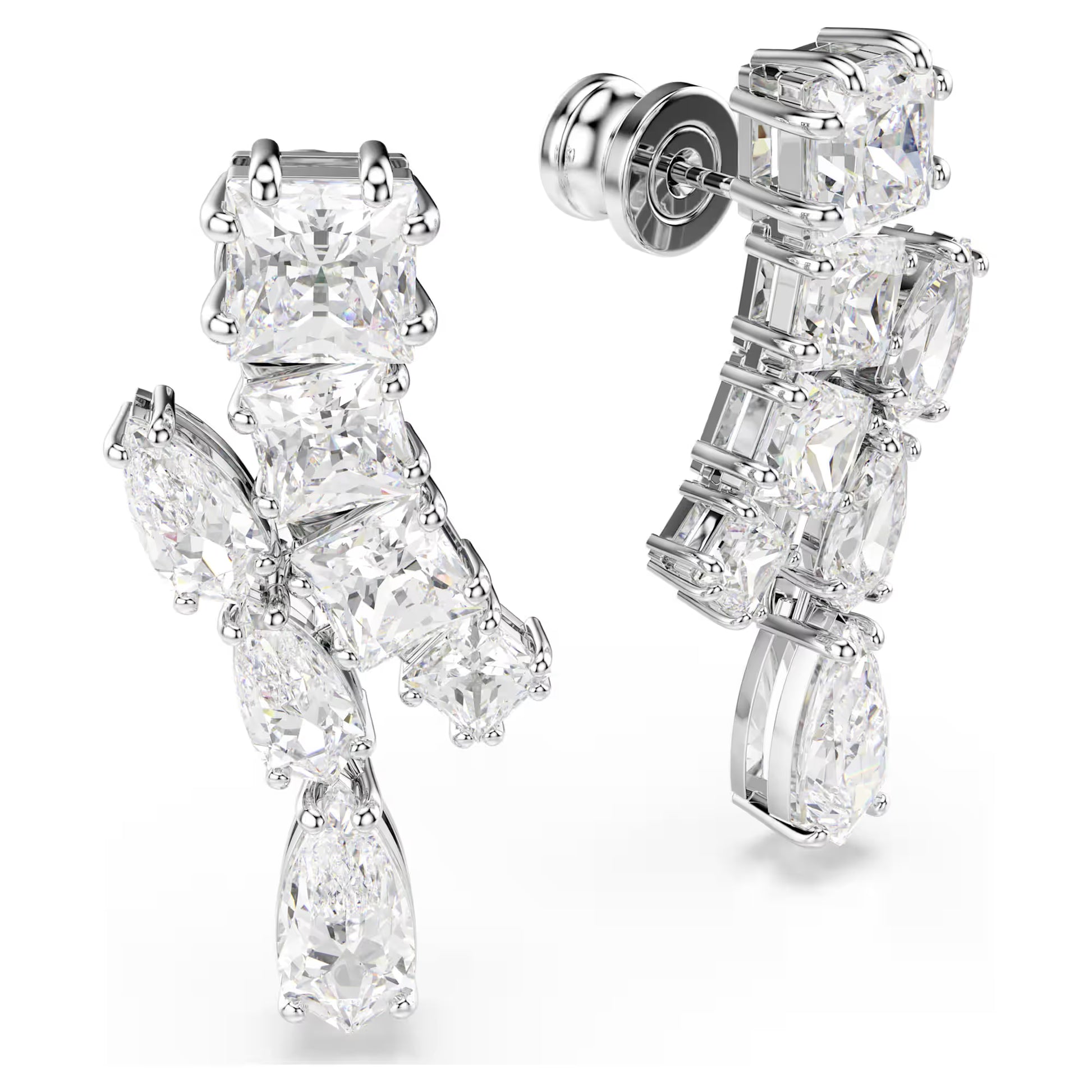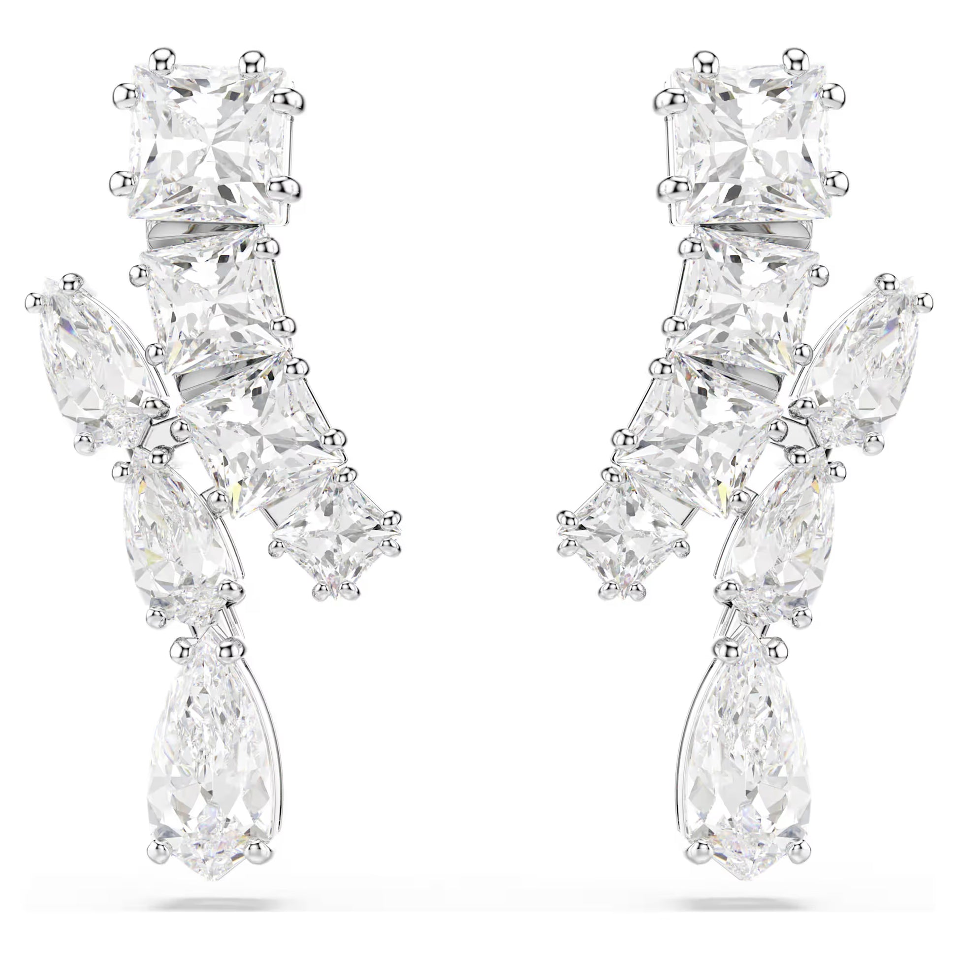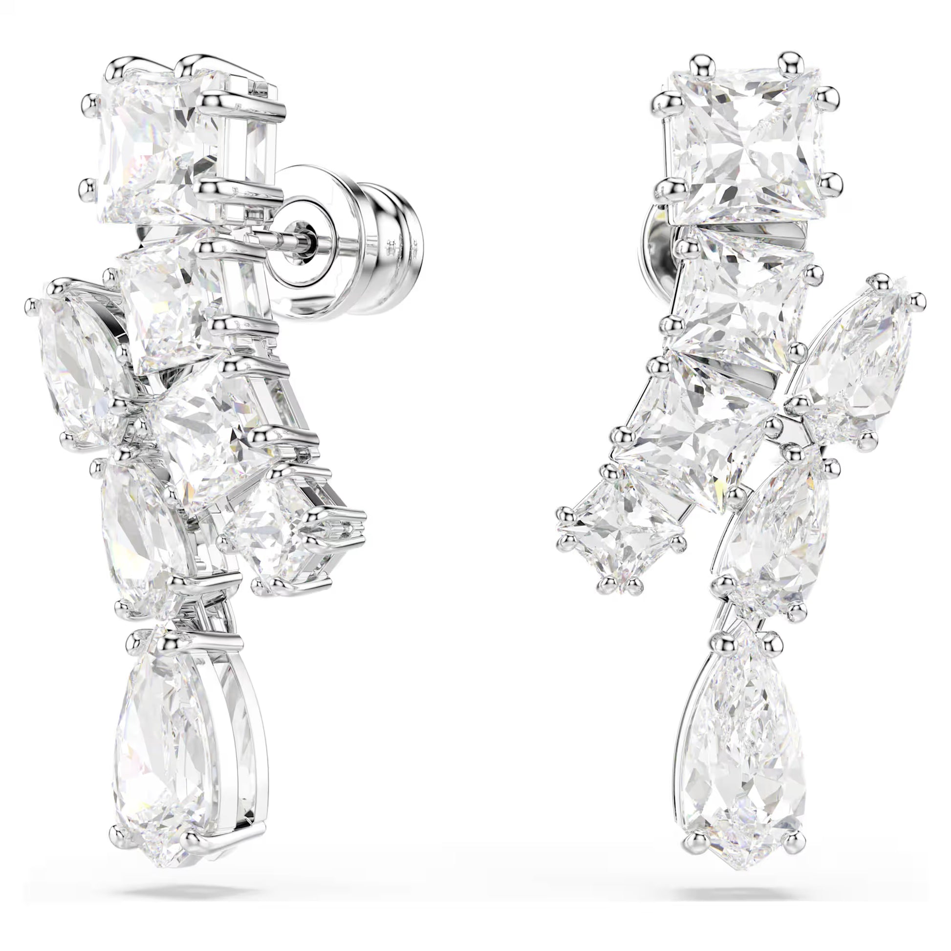 Matrix Drop Earrings, Mixed Cuts, White, Rhodium
