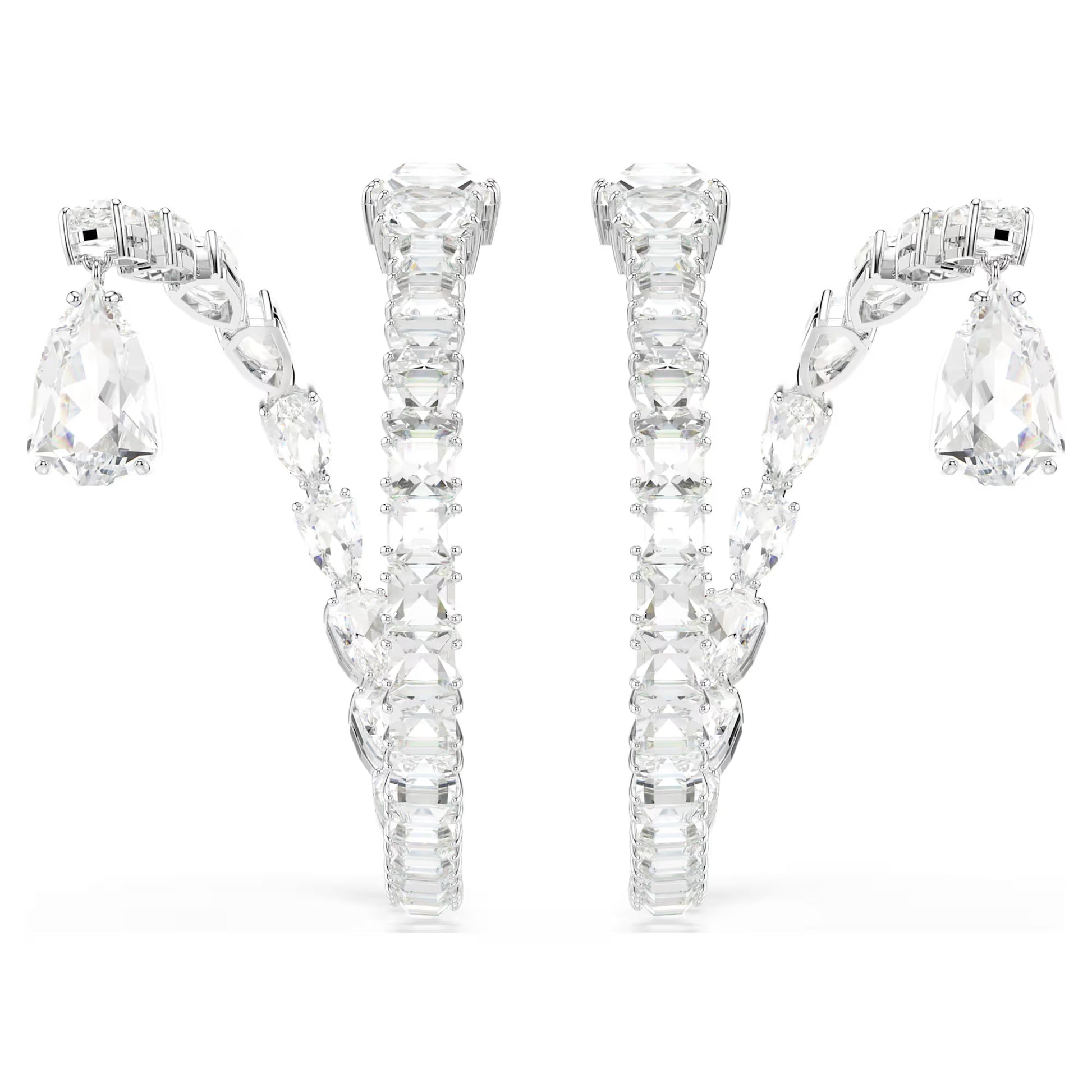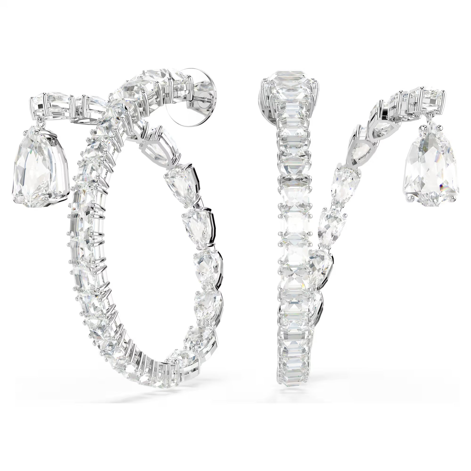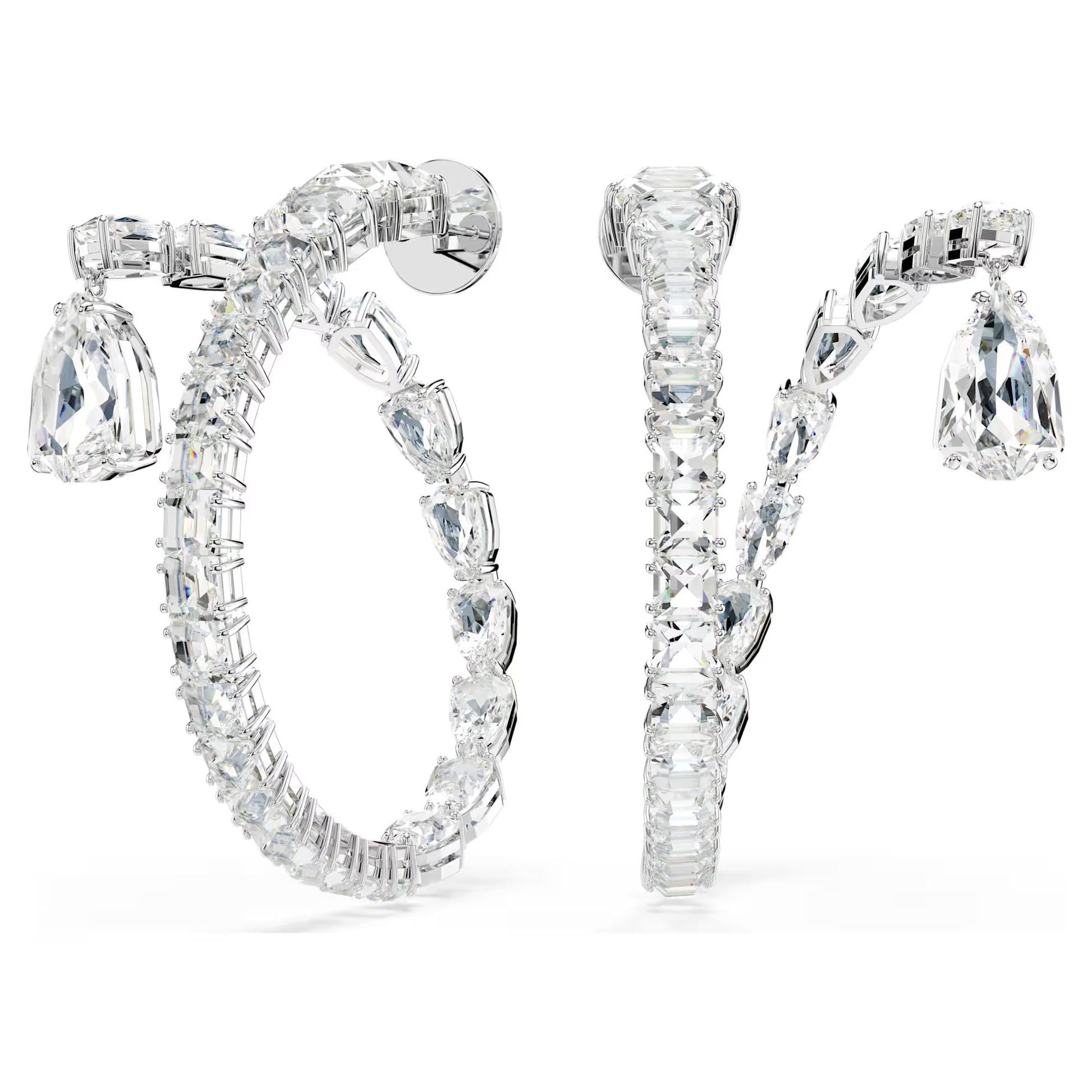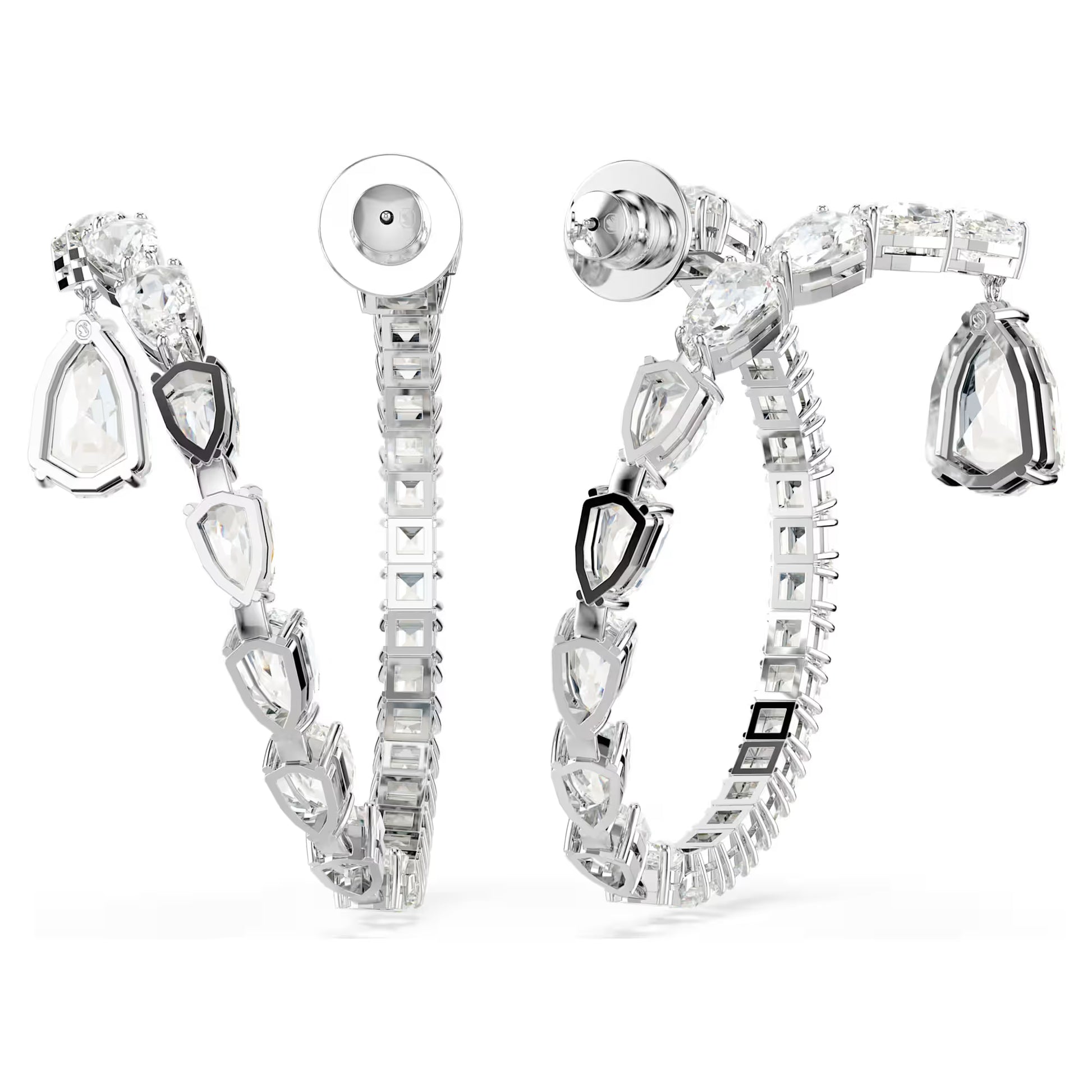 Matrix Hoop Earrings, Mixed Cuts, White, Rhodium