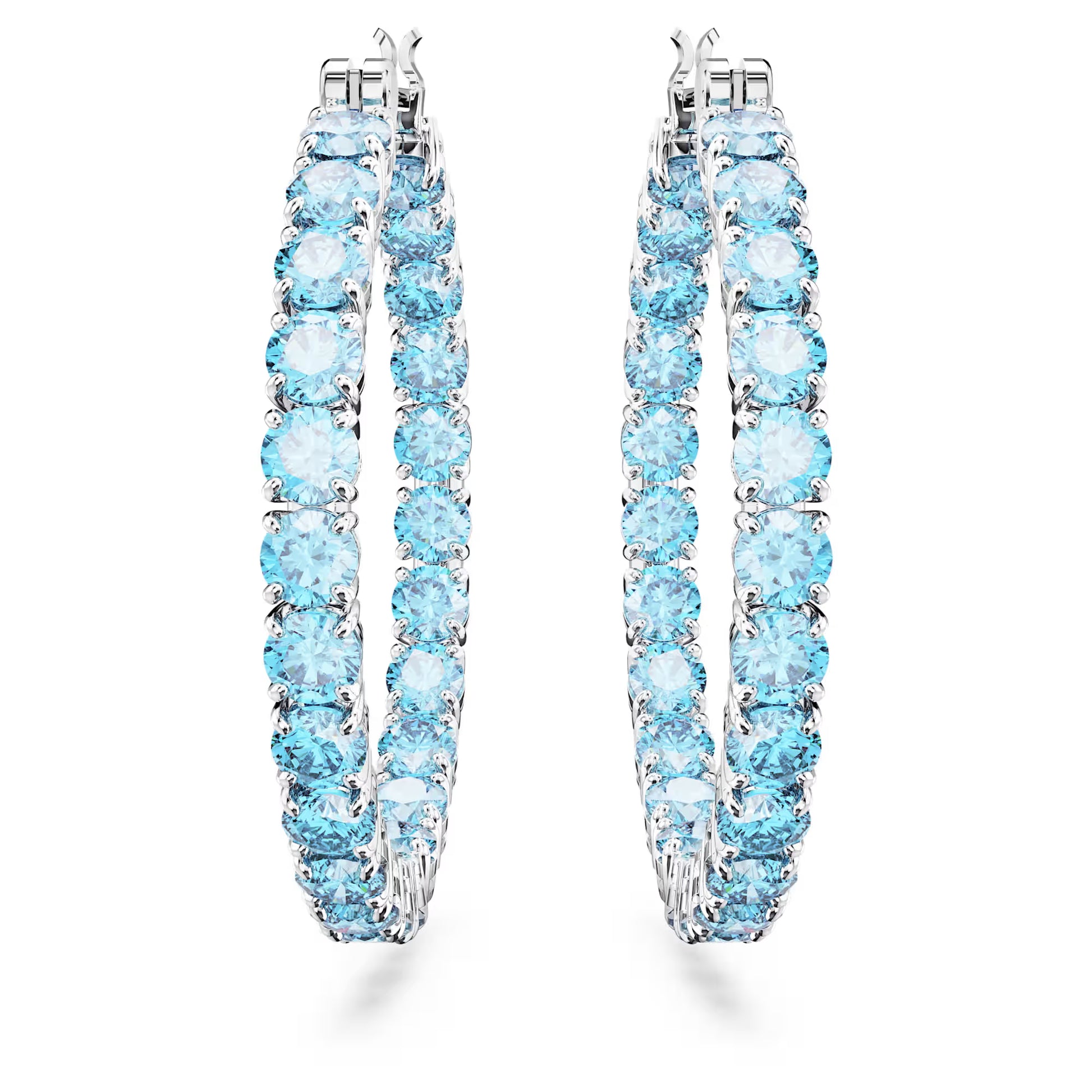 Matrix Hoop Earrings, Round Cut, Blue, Rhodium Pla