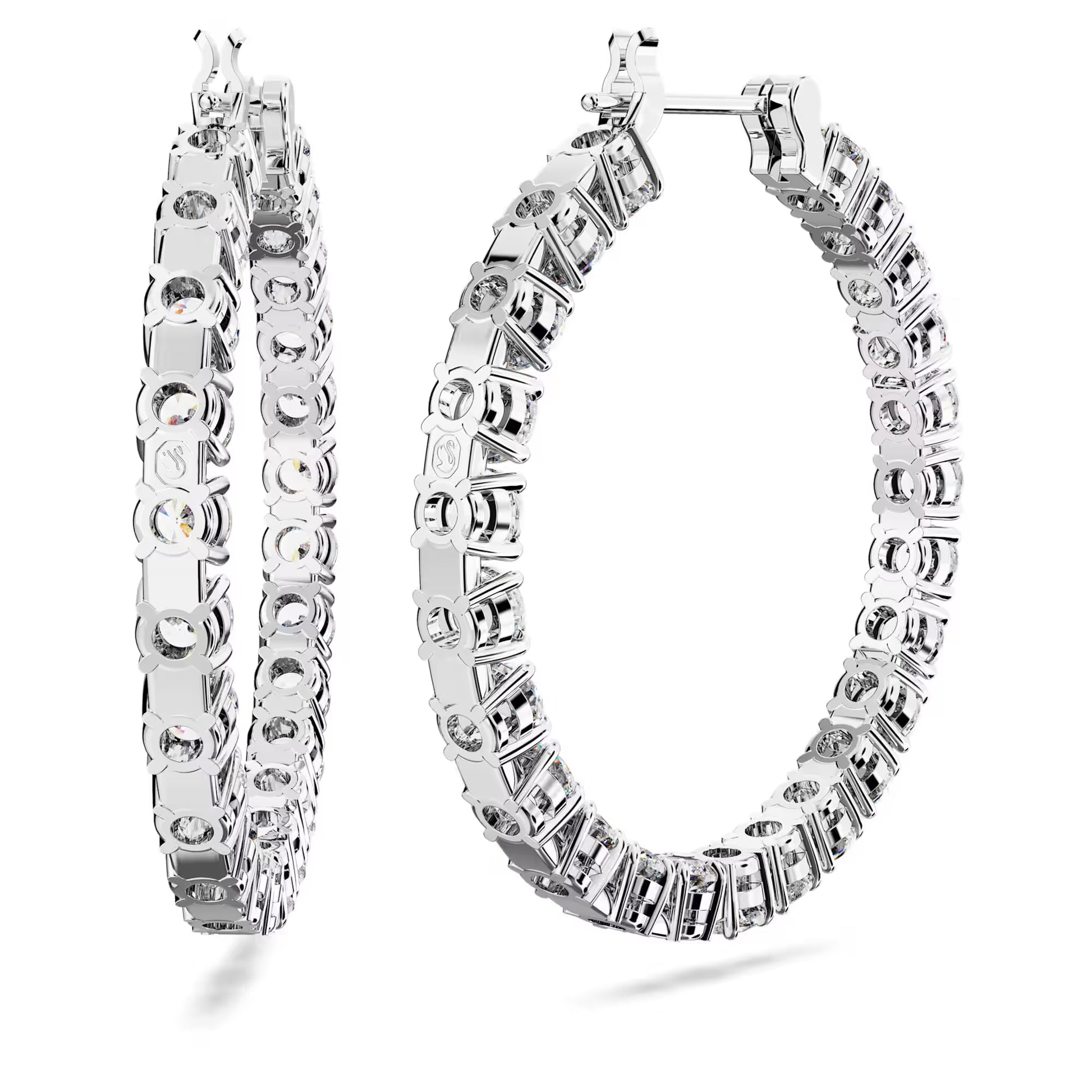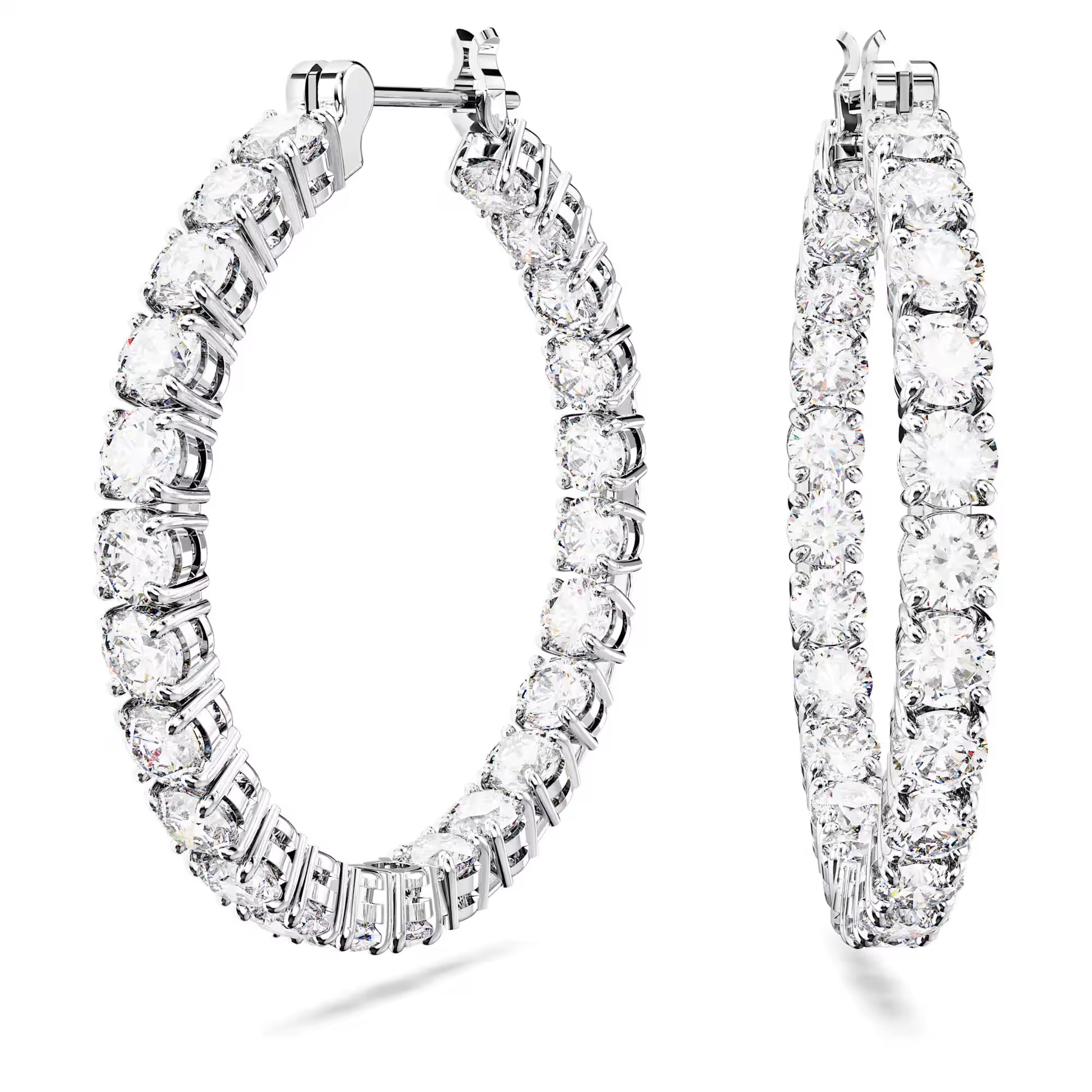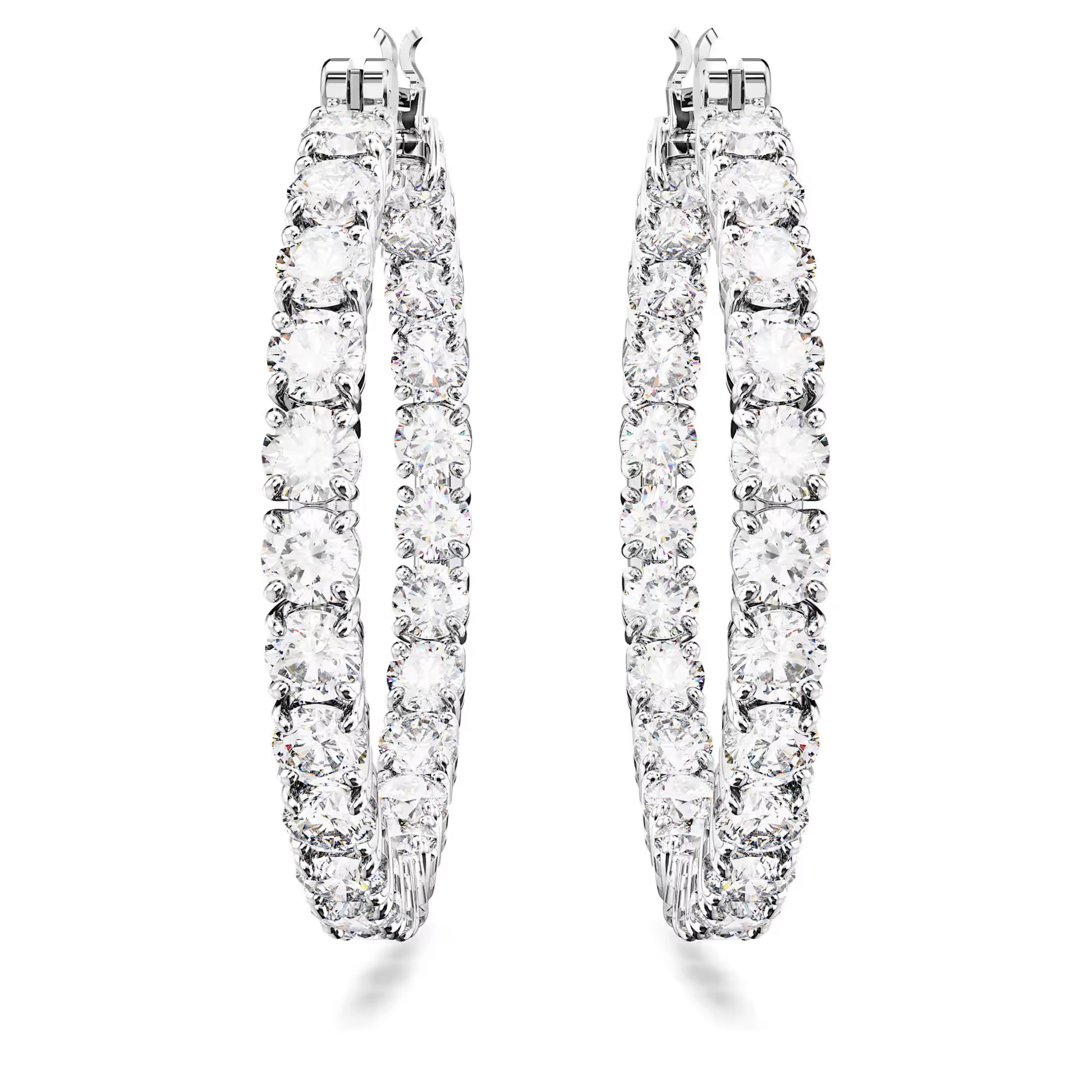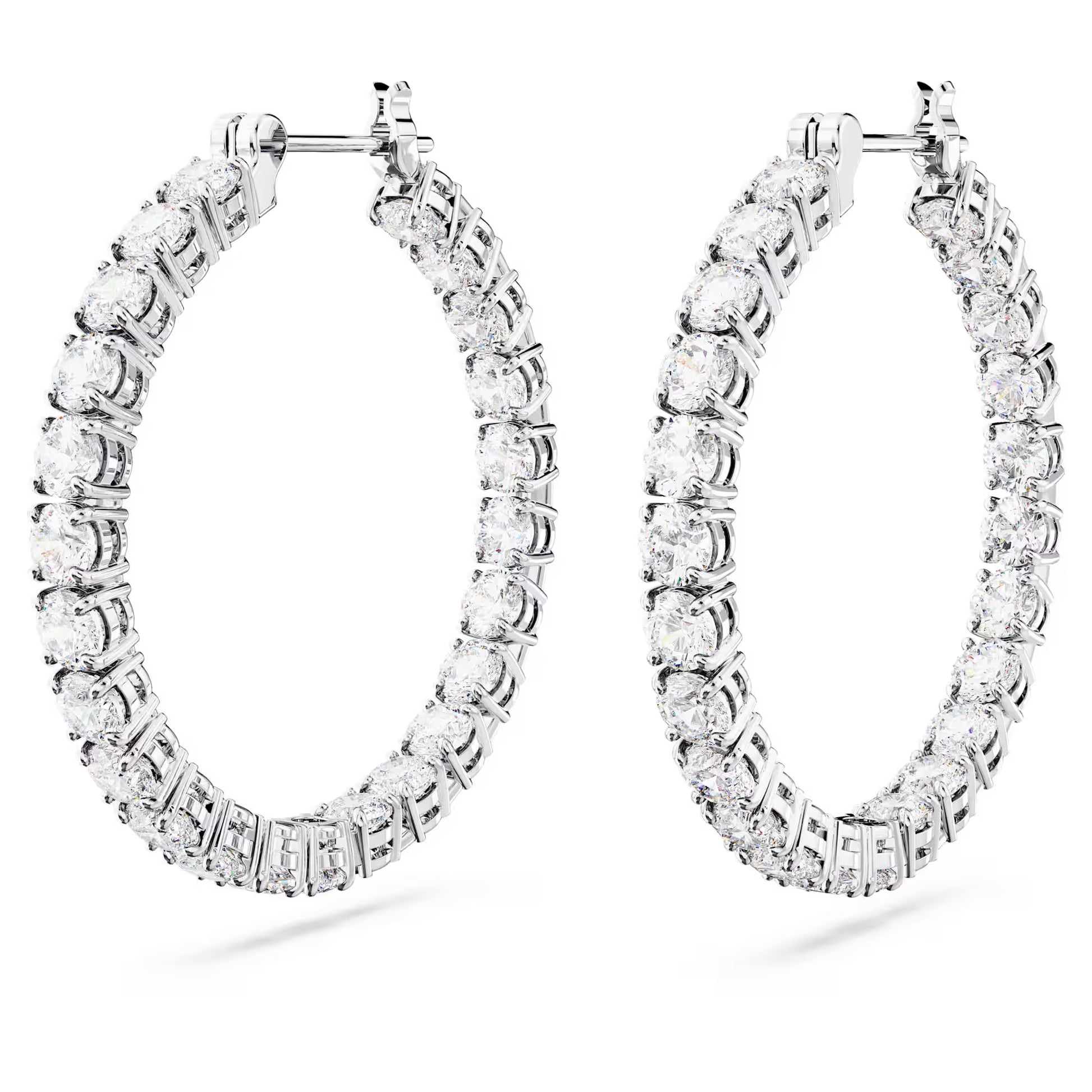 Matrix Hoop Earrings, Round Cut, White, Rhodium