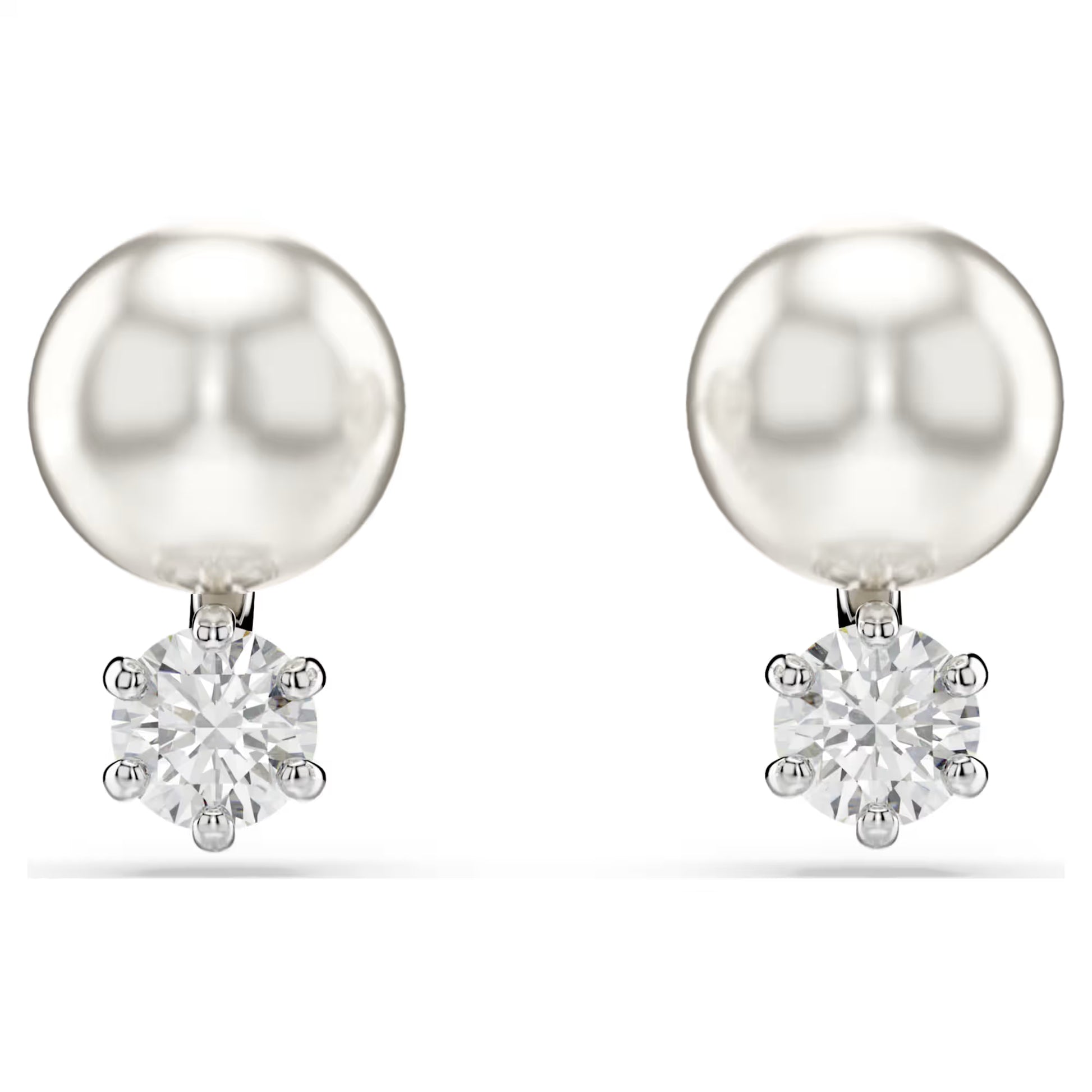 Matrix Stud Earrings, Crystal Pearl, White Rhodium