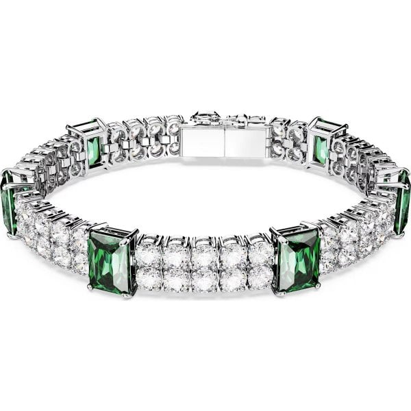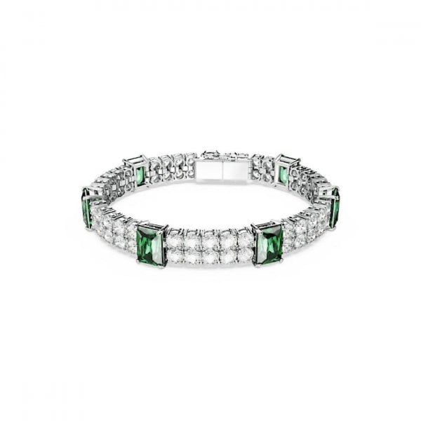 Matrix Tennis Bracelet, Mixed Cuts, Green, Rhodium