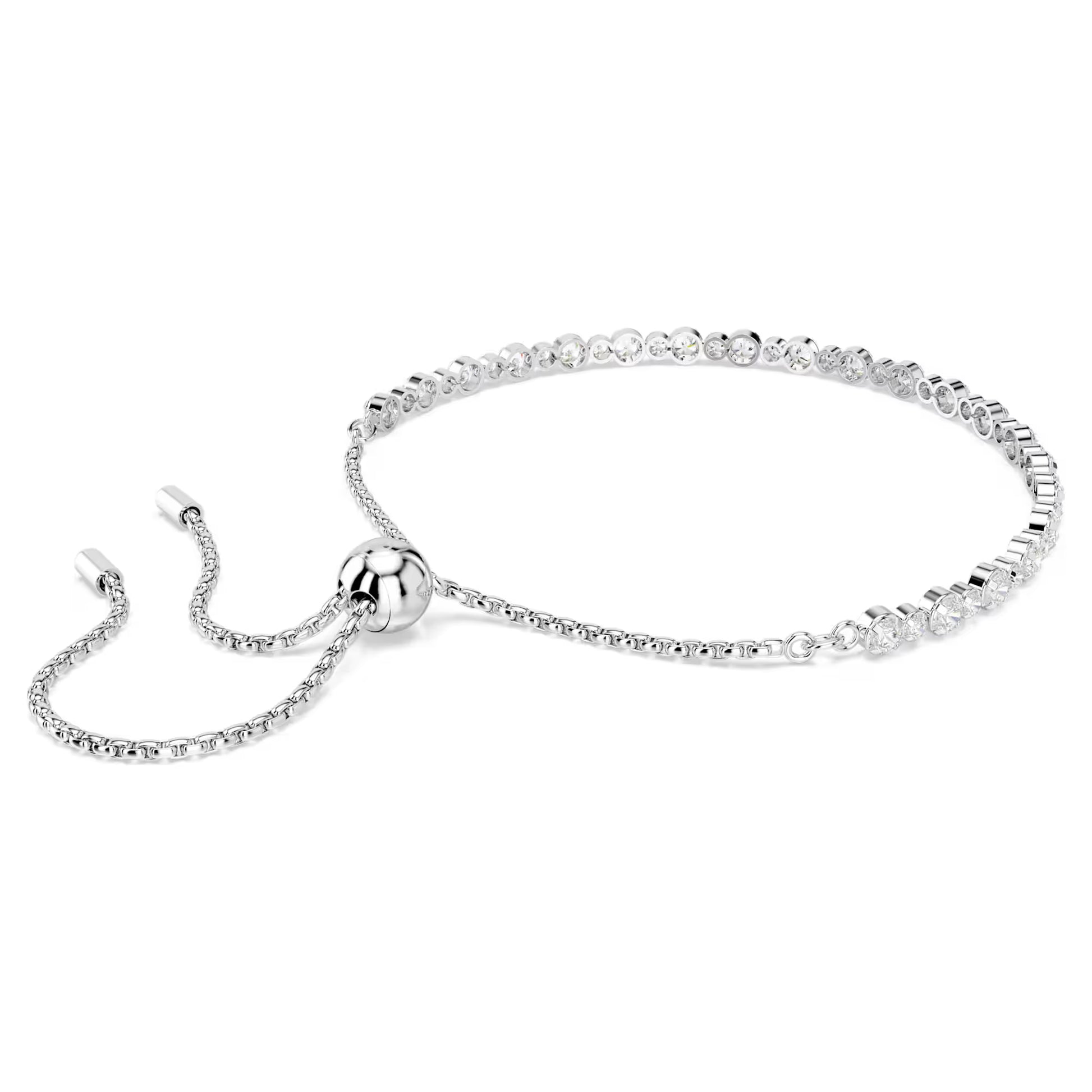 Infused with subtle elegance and timeless charm, this delicate cupchain bracelet would make an ideal gift for yourself or someone you love. The design combines clear Swarovski Zirconia and rhodium plating, finished with an adjustable sliding closure to fit any wrist size. The perfect partner for everyday outfits, it stacks easily with other bracelets for an all-over look of luxury.