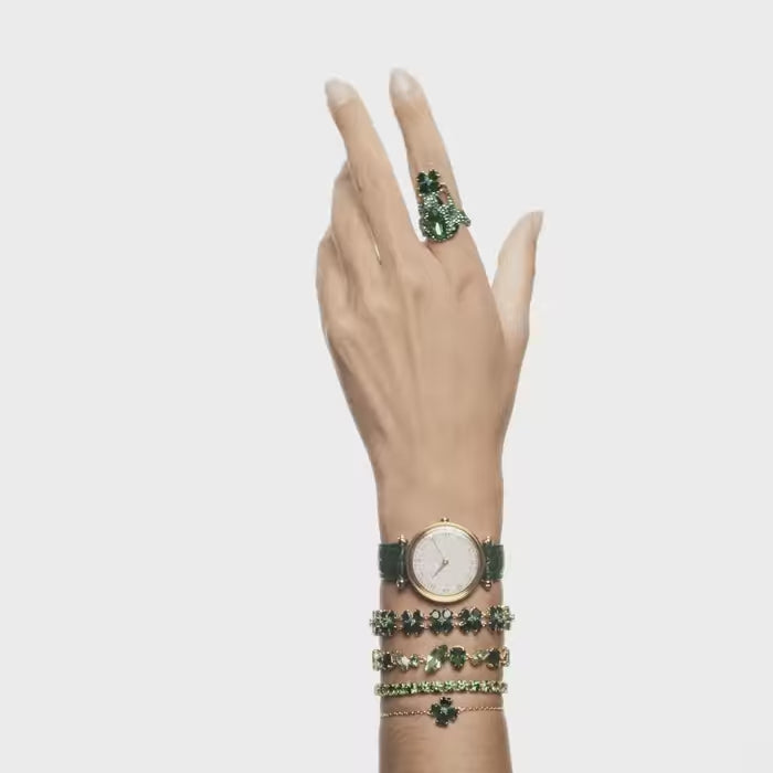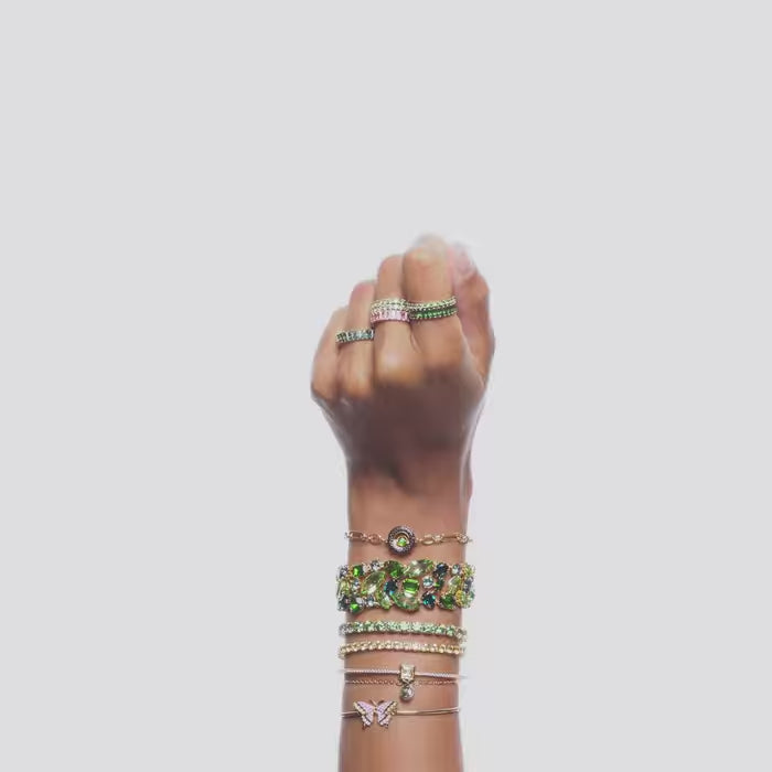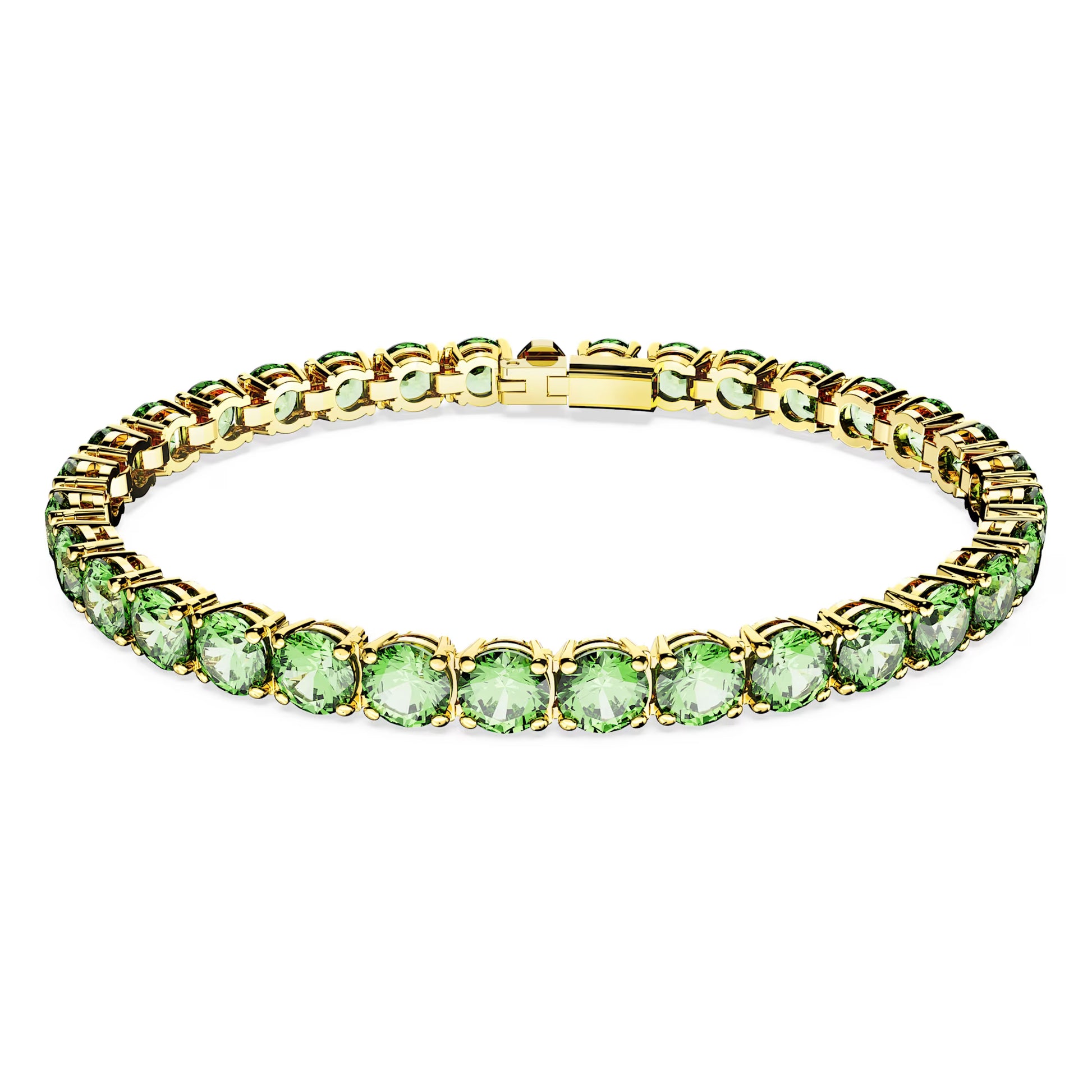 Embracing the contemporary fluidity of the Matrix Tennis family, this glittering bracelet surrounds your wrist in vibrant light-reflecting colour. Round green stones are set in gold-tone plating in sleek uniformity, giving you a piece of jewellery that is striking enough to be worn alone, and simple enough to be styled with other pieces.