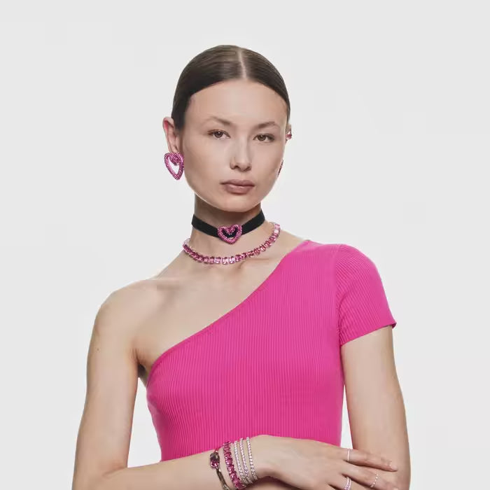 Enjoy the glimmer of rich colour with this bracelet from the Matrix Tennis family. In perfectly formed fluidity, the design features a row of round purplish pink stones on a rhodium plated setting for a combination that is truly alluring. Wear it alone, or pair it with other pieces from the Matrix Tennis family.