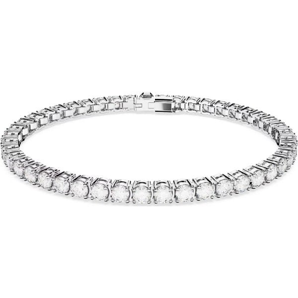 This shimmering Matrix Tennis bracelet delivers the classic combination of dazzling clear stones and cool rhodium plating, an enduring look that never goes out of style. Each of the crystals wonderfully reflects the light, ensuring your wrist is eye-catching at all times. Enjoy this timeless piece of jewellery for yourself or consider it as a beautiful gift idea.
