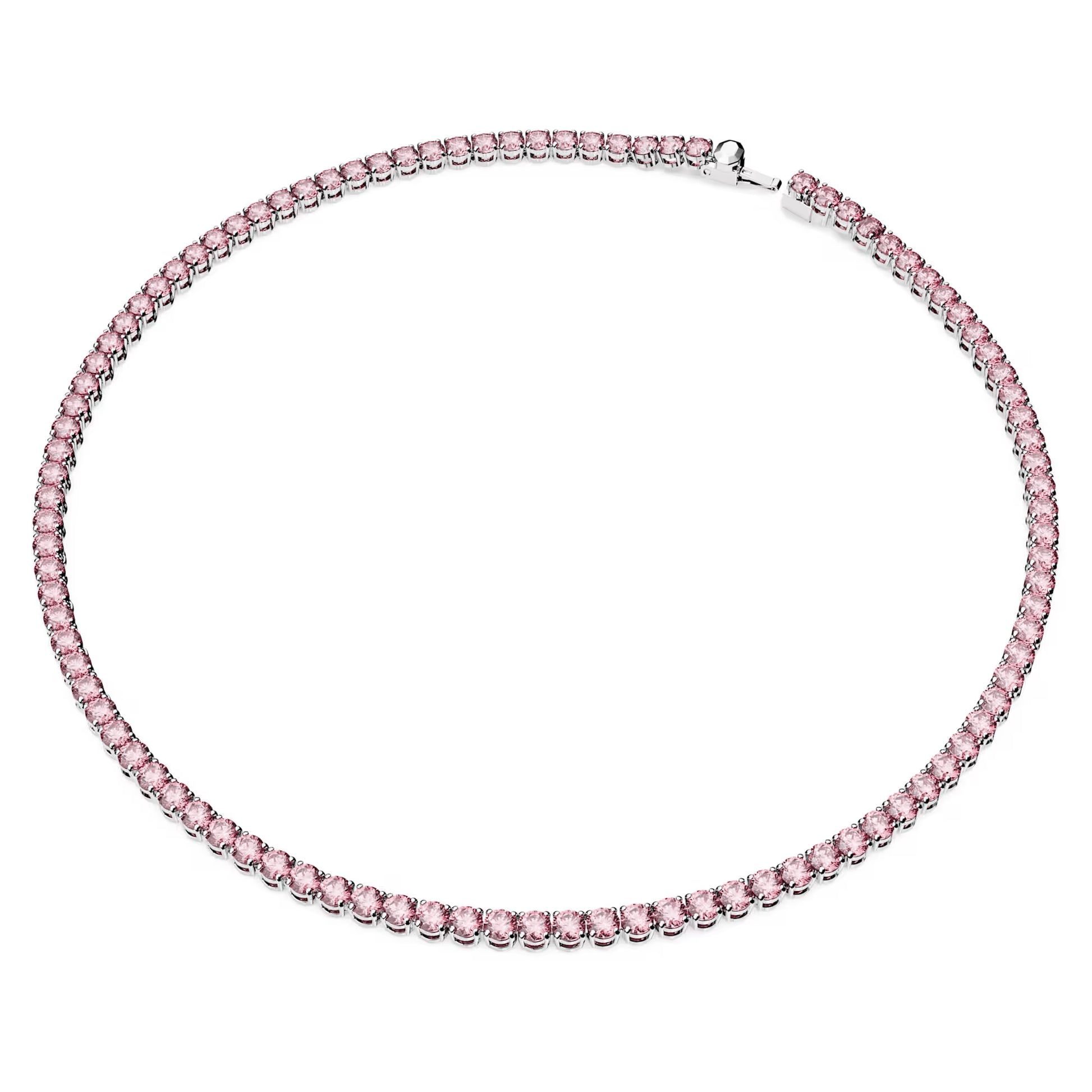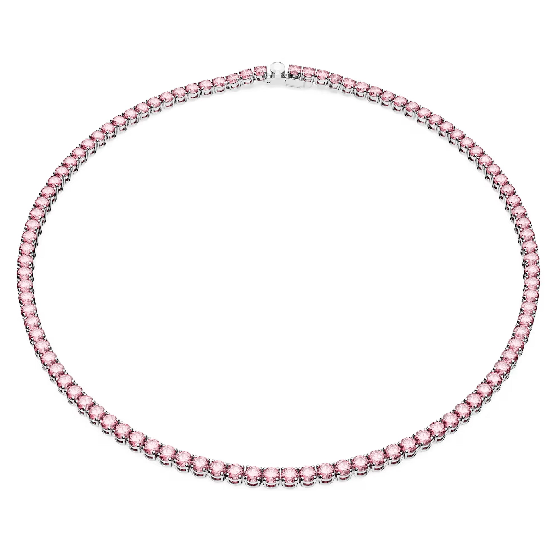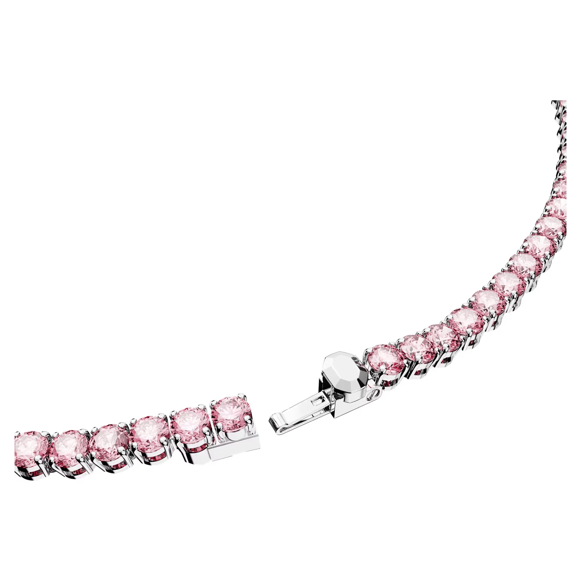 Matrix Tennis Necklace, Round, Pink, Rhodium, M