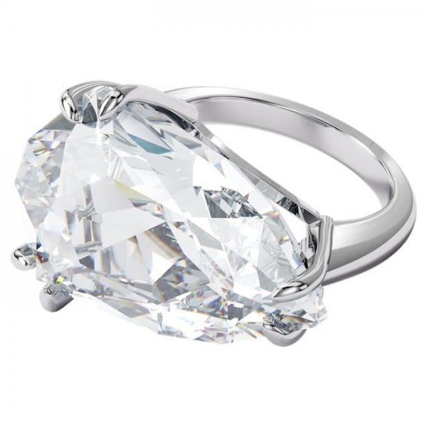 Formed by our master artisans from an elongated trillion cut clear crystal, and cradled in a modern rhodium plated claw setting, this crystal cocktail ring is modern elegance at its best. Style it over evening gloves, or wear on bare fingers in multiples; no matter how choose to wear it, this show-stopping design will elevate your look. This ring is part of the Mesmera family, designed by Creative Director Giovanna Engelbert for Collection I.