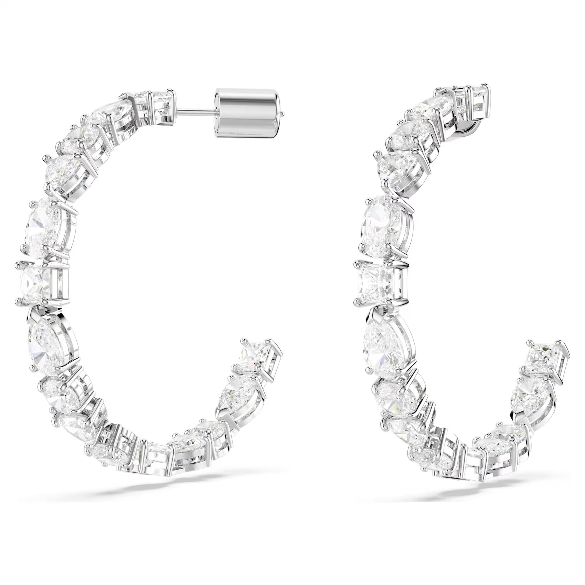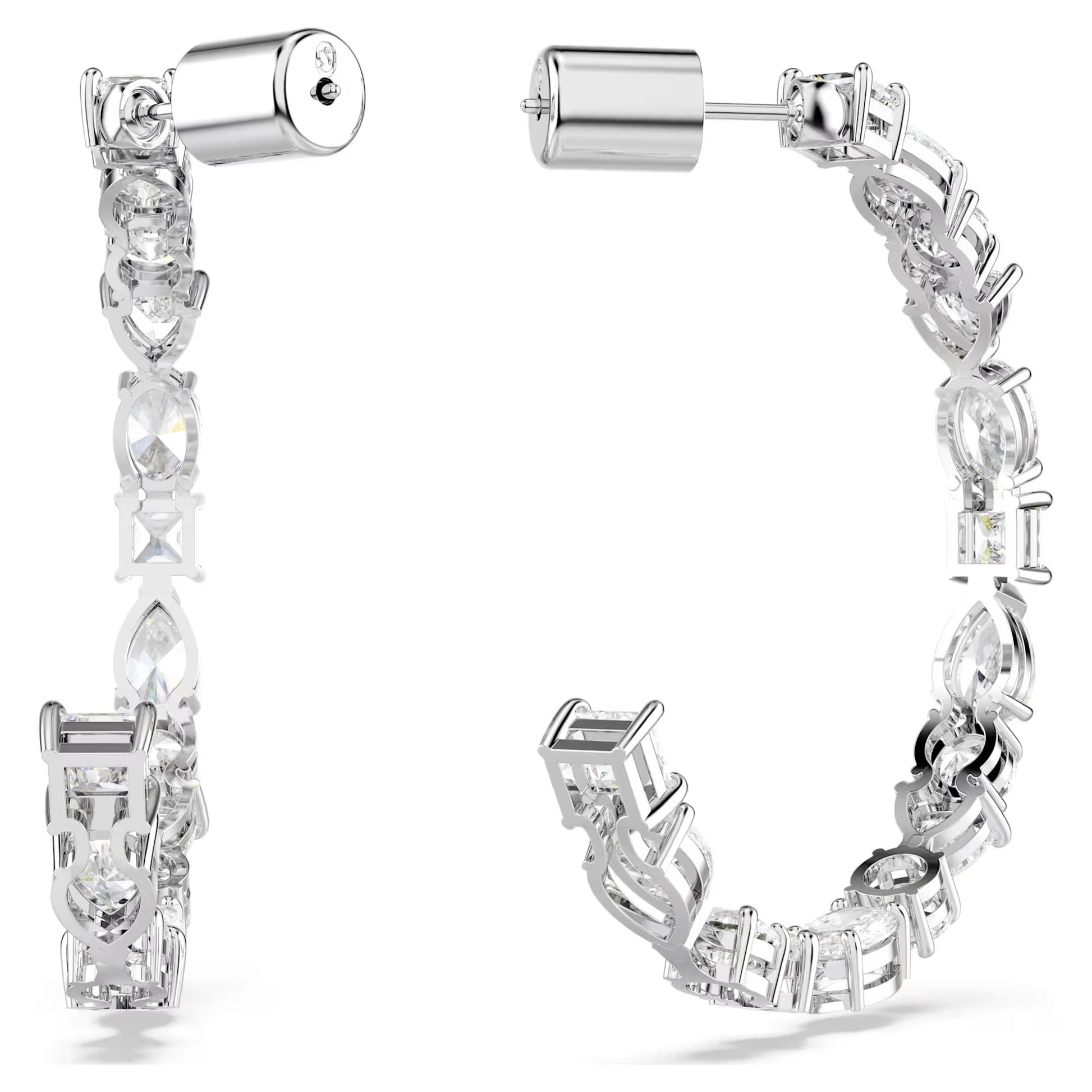 Mesmera Hoop Earrings, Mixed Cuts, White, Rhodium