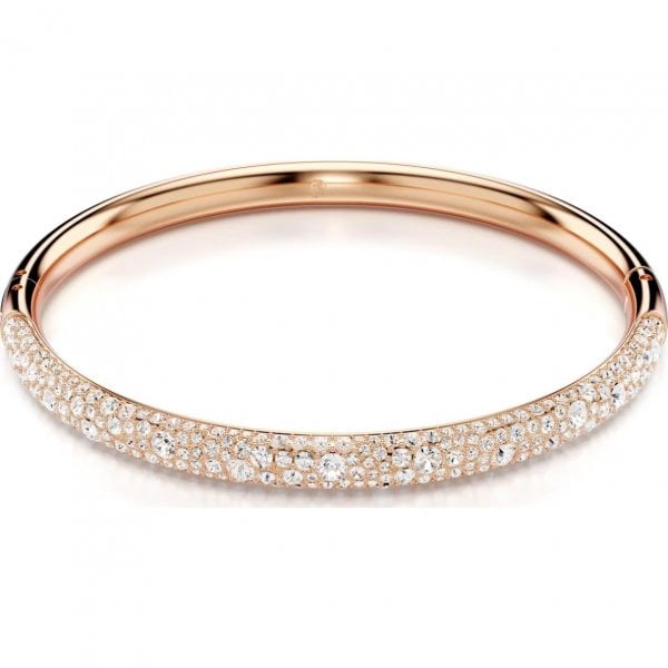 This dazzling Meteora bangle will infuse your style with stardust. The rose gold-tone plated band wraps gracefully around the wrist and features a snow pavé of clear round crystals in different sizes across the top section. A wondrous touch of refinement for your everyday looks.