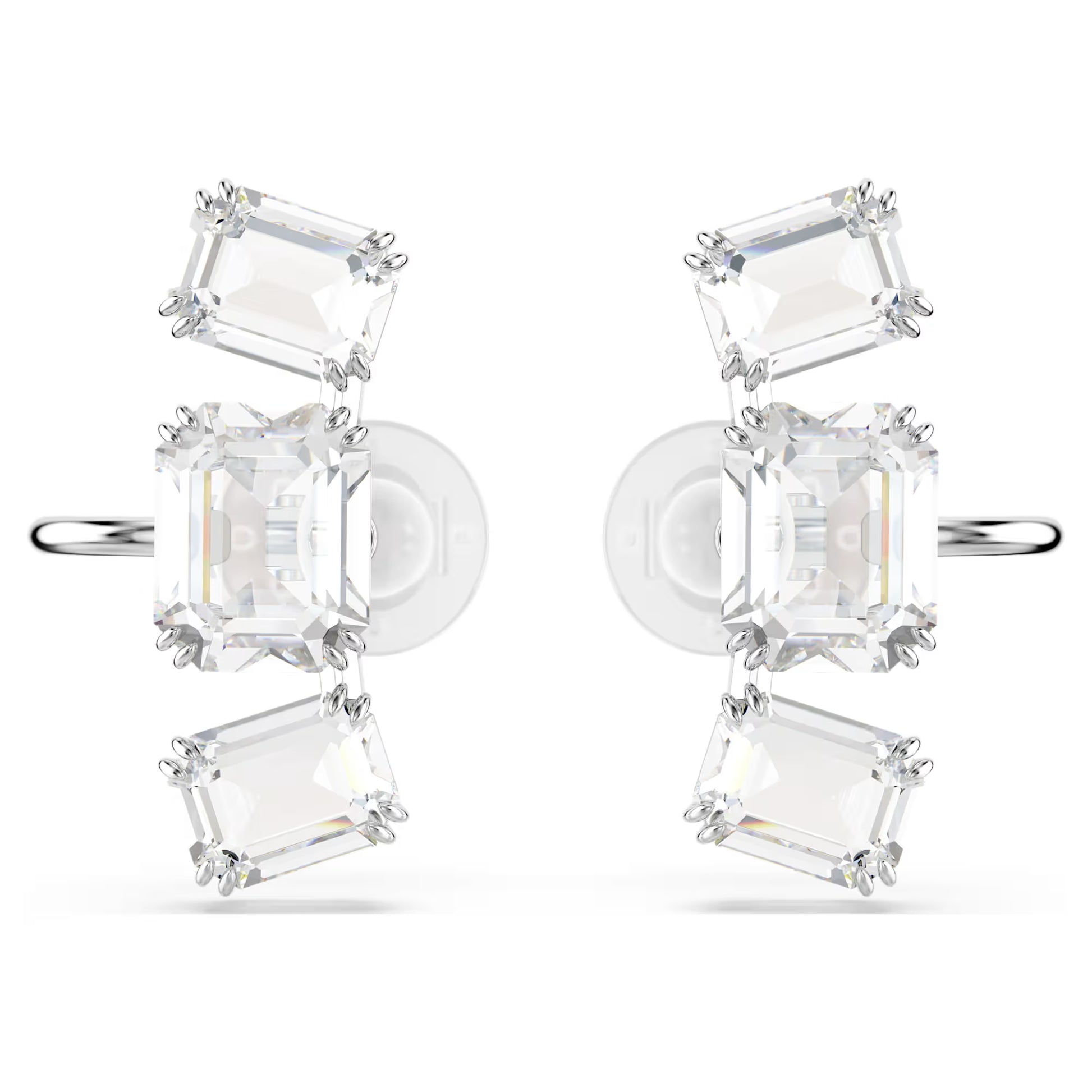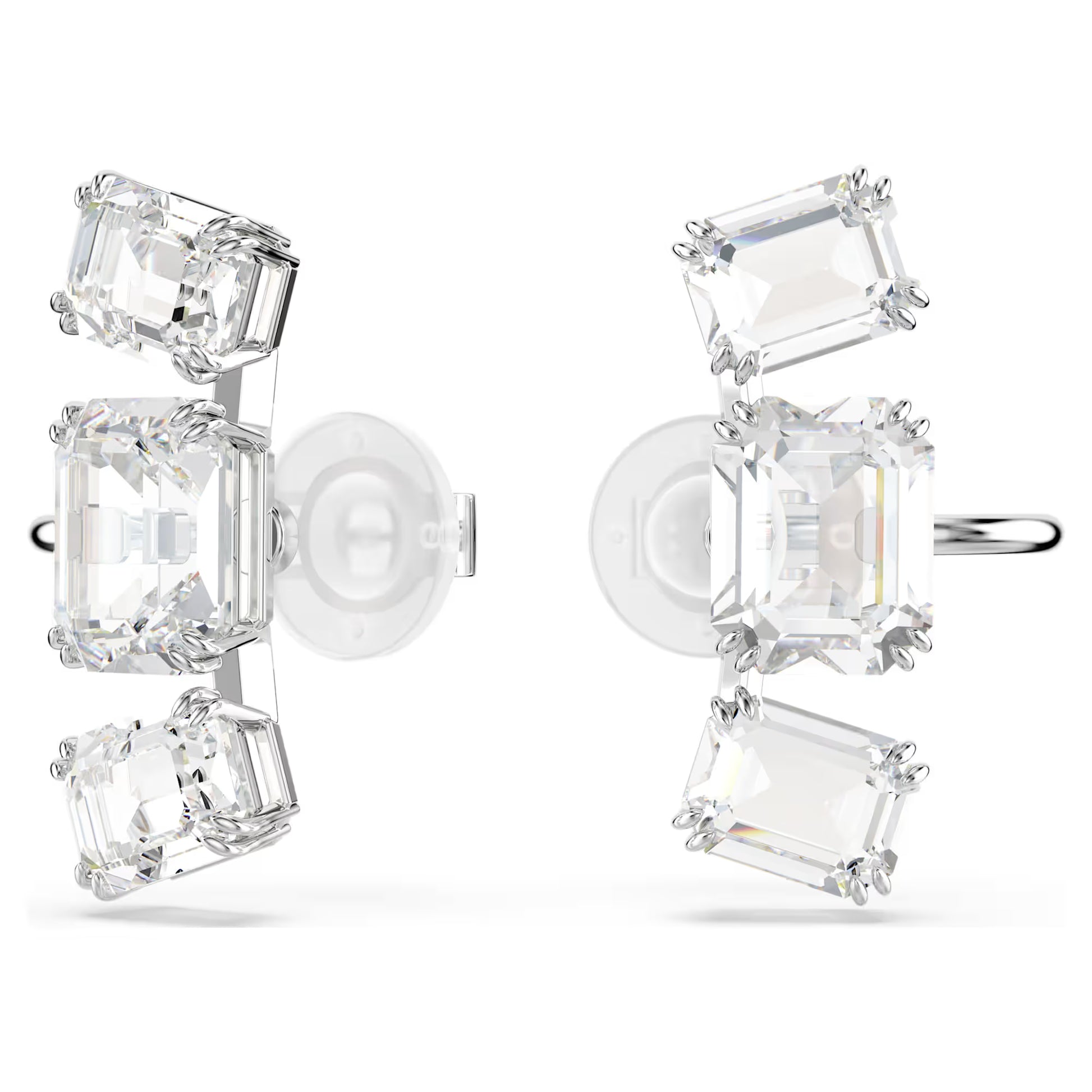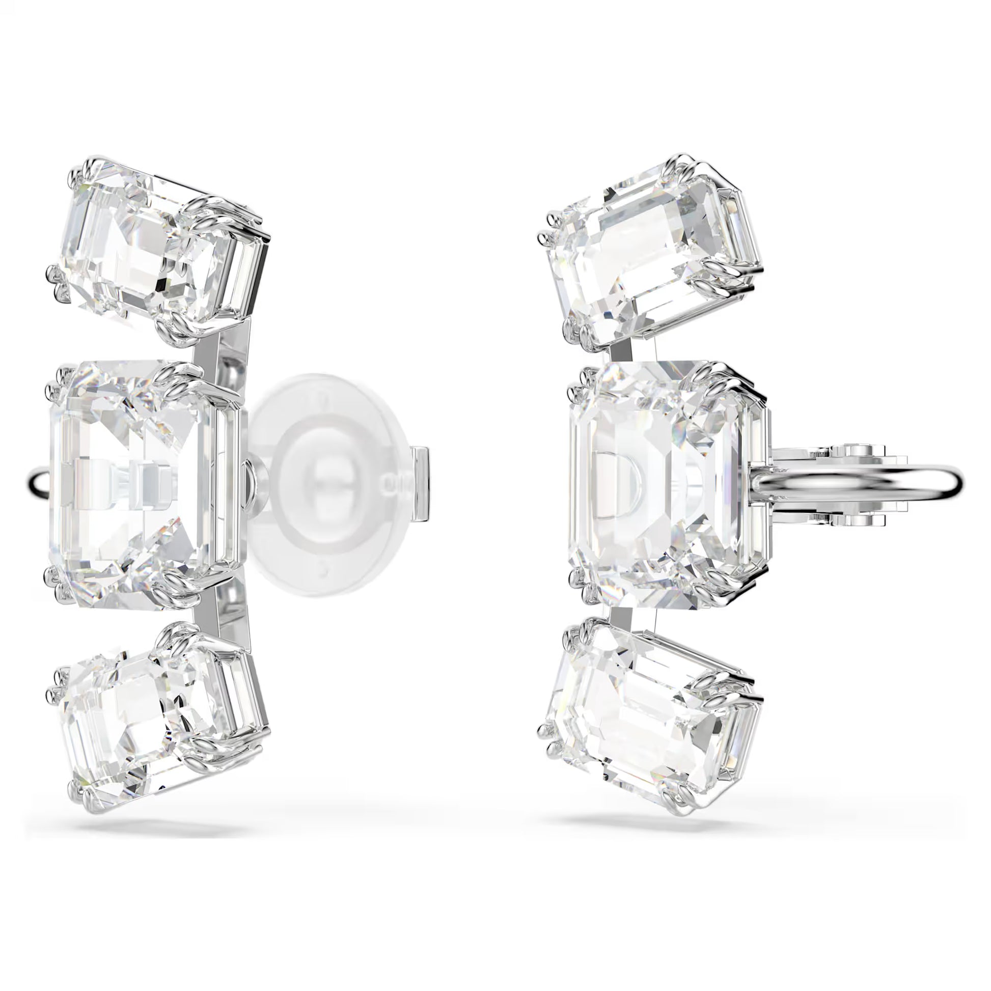 Millenia Clip Earring, Octagon Cut, White, Rhodium