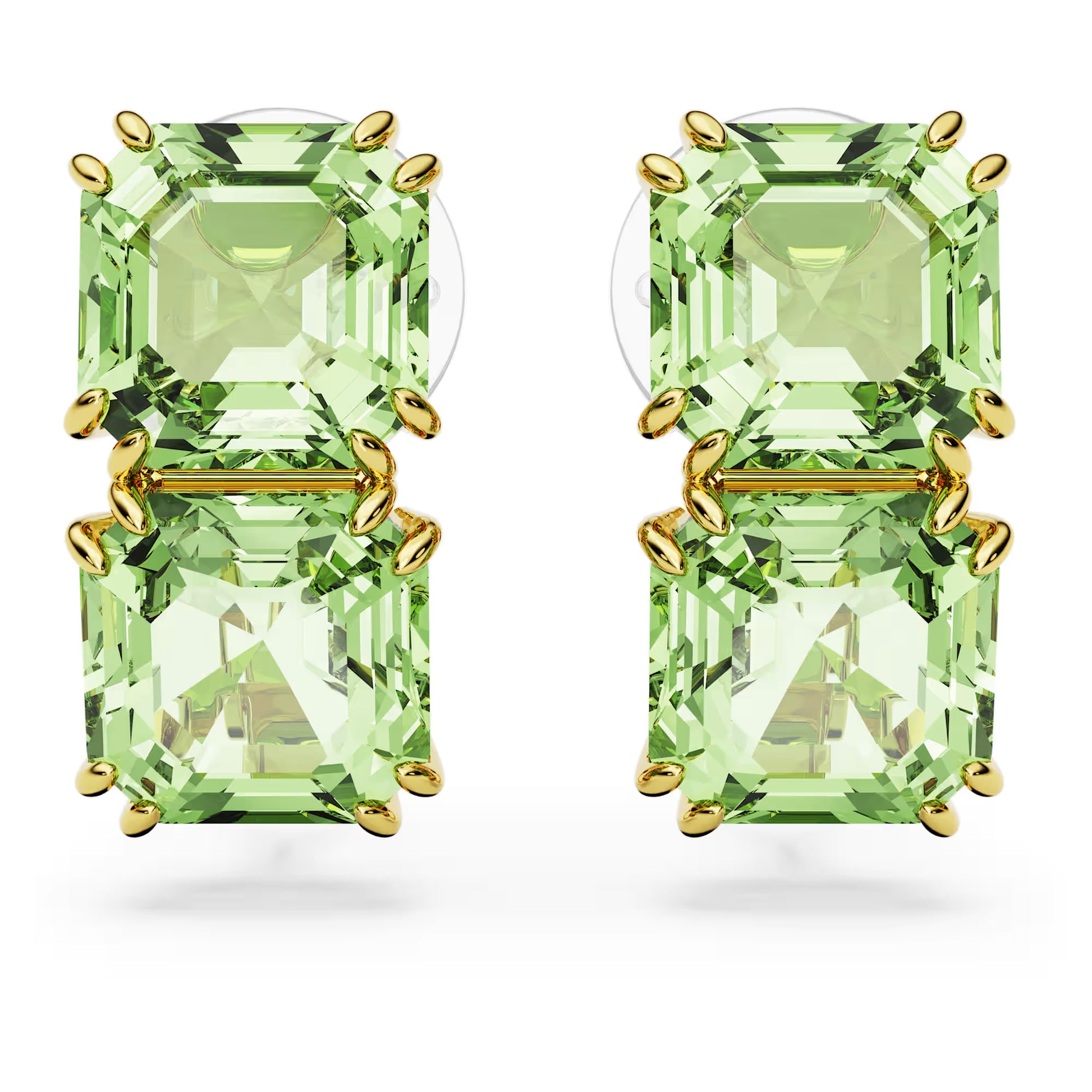 For a beautiful twist on style, these Millennia earrings embrace vibrant colour. While gold-tone plating provides the framework, the radiance is delivered by green square-cut crystals. Wear them to off-set the casual simplicity of a plain white t-shirt.