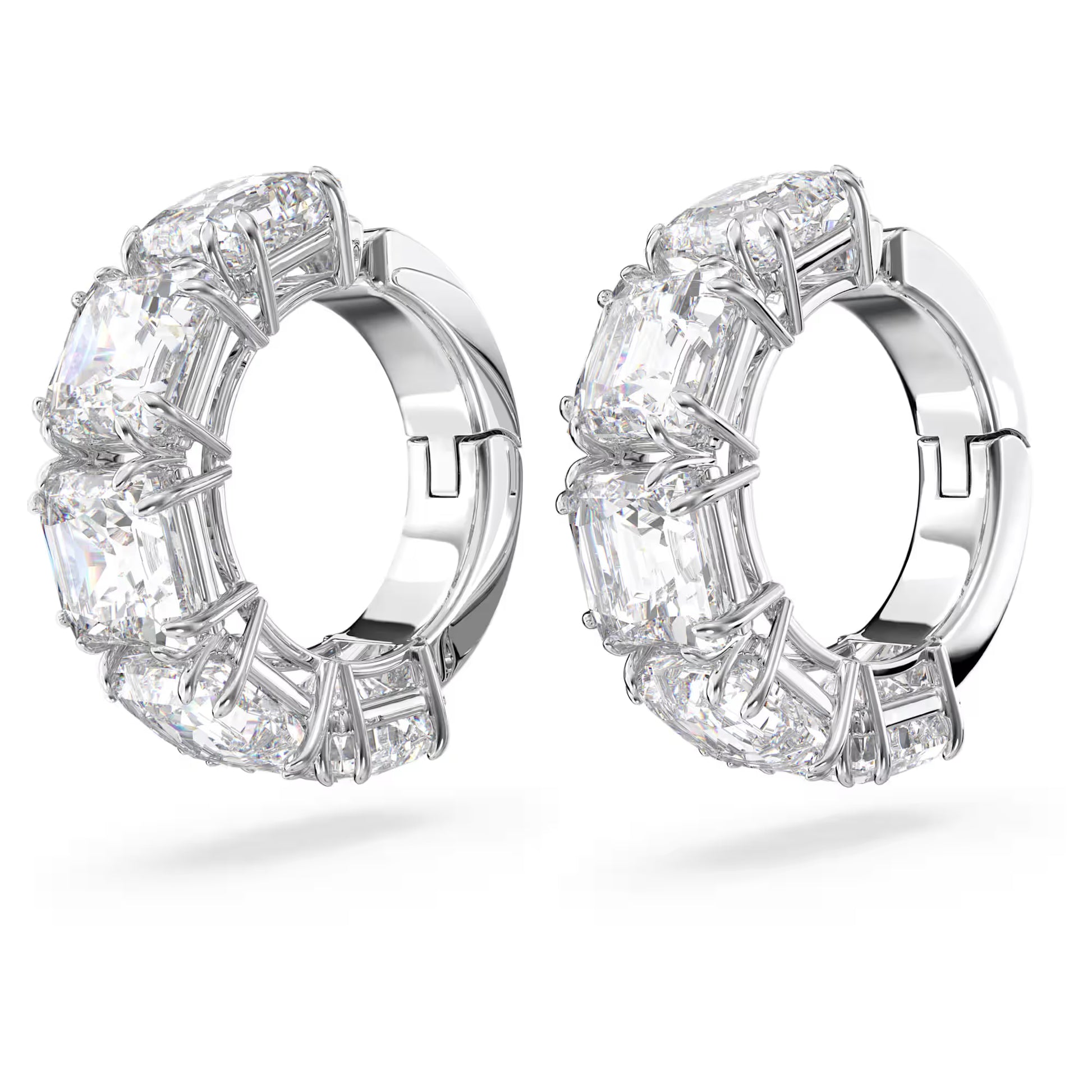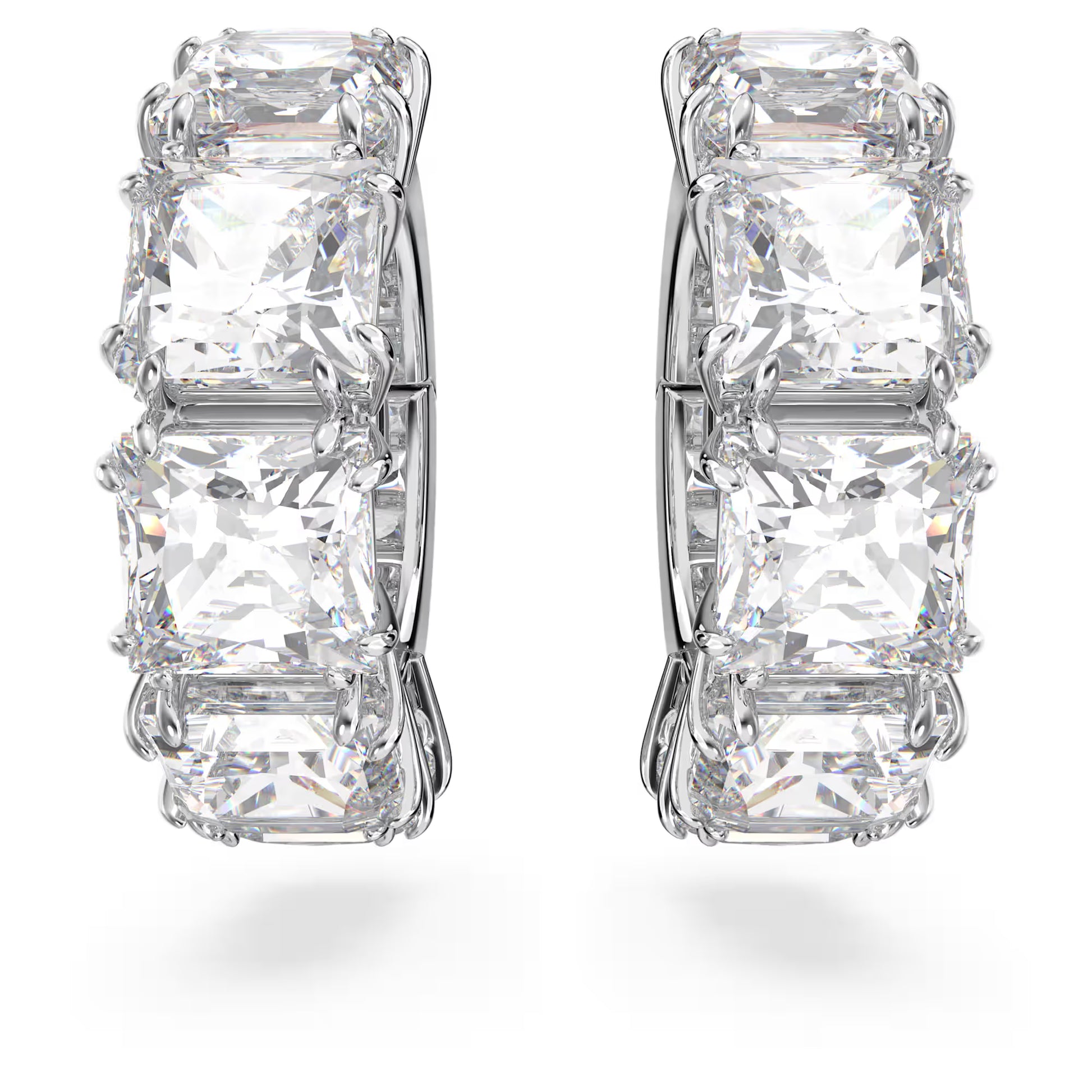 Millenia Clip Earrings, Square Cut, White, Rhodium