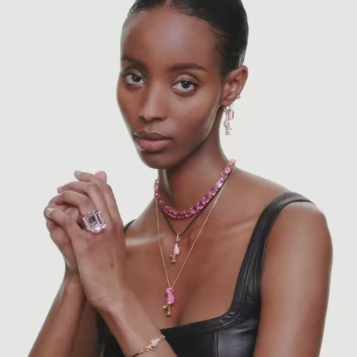 Elegant yet eye-catching, these earrings are set to become your new favourite. Designed with octagon cut crystals in an alluring pink hue, this pair is finished with a refined rose gold-tone plated setting. Style yours with other pieces from the Millenia family for maximum impact. These earrings are part of the Millenia Family, designed for Collection III.