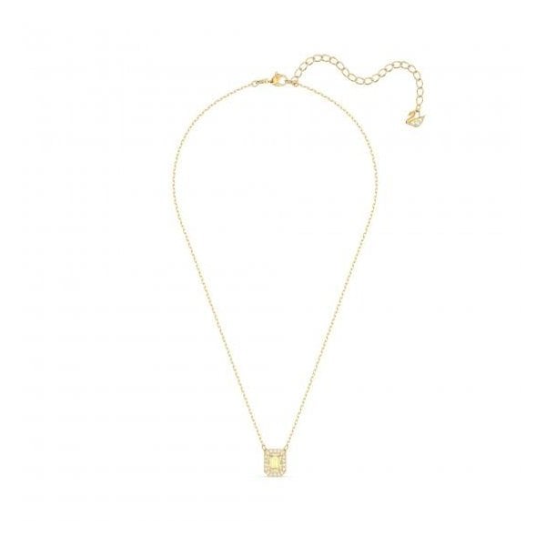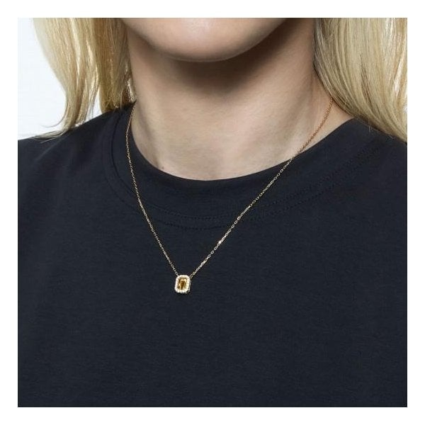 Symbolizing the rebirth of the octagon shape, this delicate pendant necklace will be treasured and worn forever. A joyful canary yellow step cut stone provides the centrepiece, which moves as you wear it. Surrounded by smaller brilliant cut stones and sus