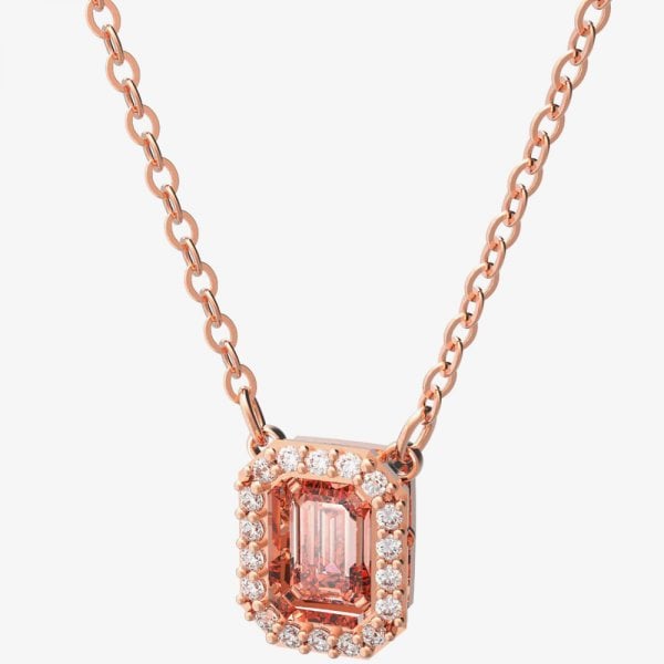 Millenia Necklace, Octagon Cut Swarovski Zirconia, Pink, Rose Gold Tone Plated