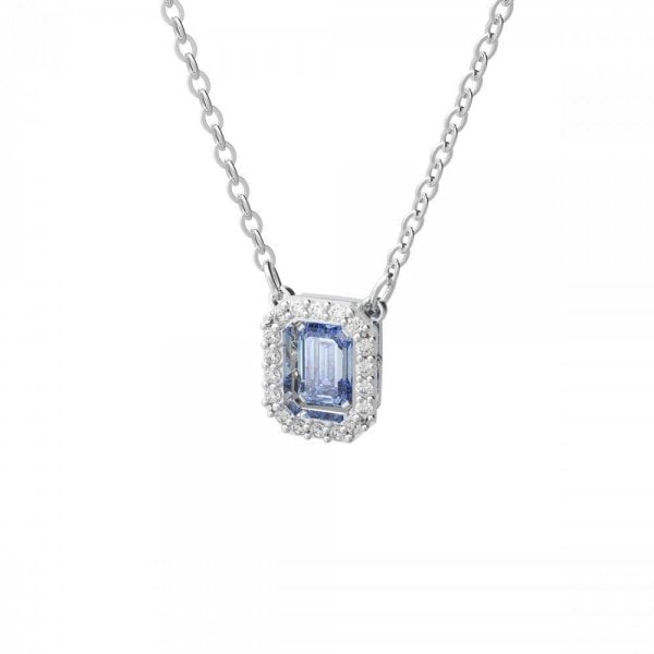 Expertly engineered to create a dancing stone mechanism, this alluring pendant moves with you. Featuring an elegant, blue, octagon-cut stone at its core, it's elegantly framed with smaller crystals and a rhodium-plated setting. Style yours with a simple,