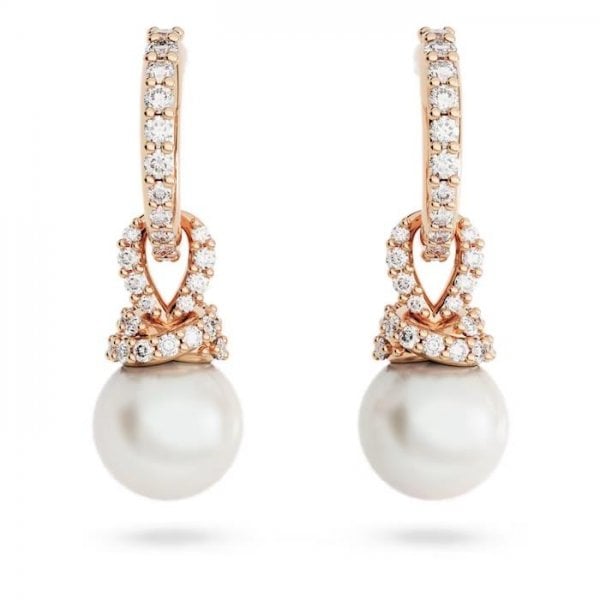 For this beautiful design from the Originally family, classic pearl earrings have been re-imagined with Swarovski's savoir-faire. The result is a modern pair of earrings featuring rose gold-tone plated hoops and twists of shimmering pavé holding a luminous Swarovski Crystal Pearl. Choose this pair for classic glamour and a subtle glow.