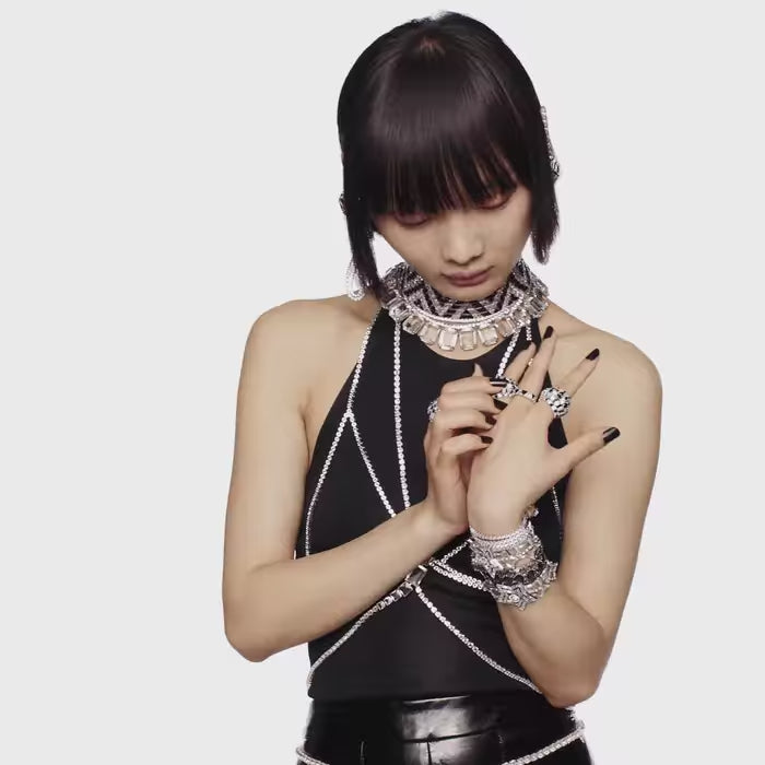 This monochrome cocktail ring is an effortless, everyday staple. Striking the balance of bold and refined, it's expertly crafted from precision-cut, triangle crystals and has a timeless, rhodium-plated setting. Wear yours with the matching bracelet to elevate any look, from denim to black-tie ensembles. This ring is part of the Matrix family, designed by Creative Director Giovanna Engelbert for Collection II.