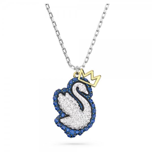 Pop Swan Pendant, Swan, Blue, Rhodium Plated