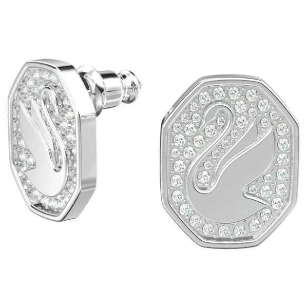 Signum Stud Earrings Swan, White, Rhodium Plated