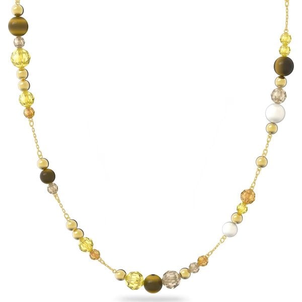 This bohemian-inspired necklace is formed from clusters of earth-toned crystals and lustrous tiger's eye beads. Set on an extra-long, gold-tone plated chain, it's designed to give you styling options whether you wear it as it is, wrapped multiple times around the neck, or layered with other pieces from the Somnia family.