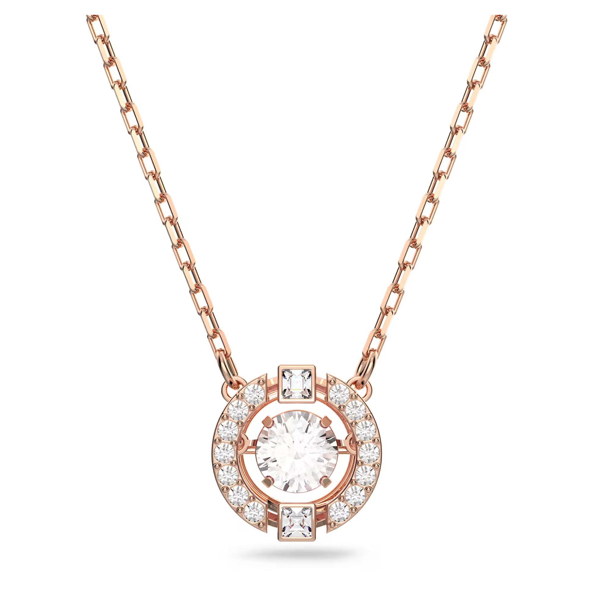 Una Necklace, Round Cut, White, Rose Gold Tone Plated