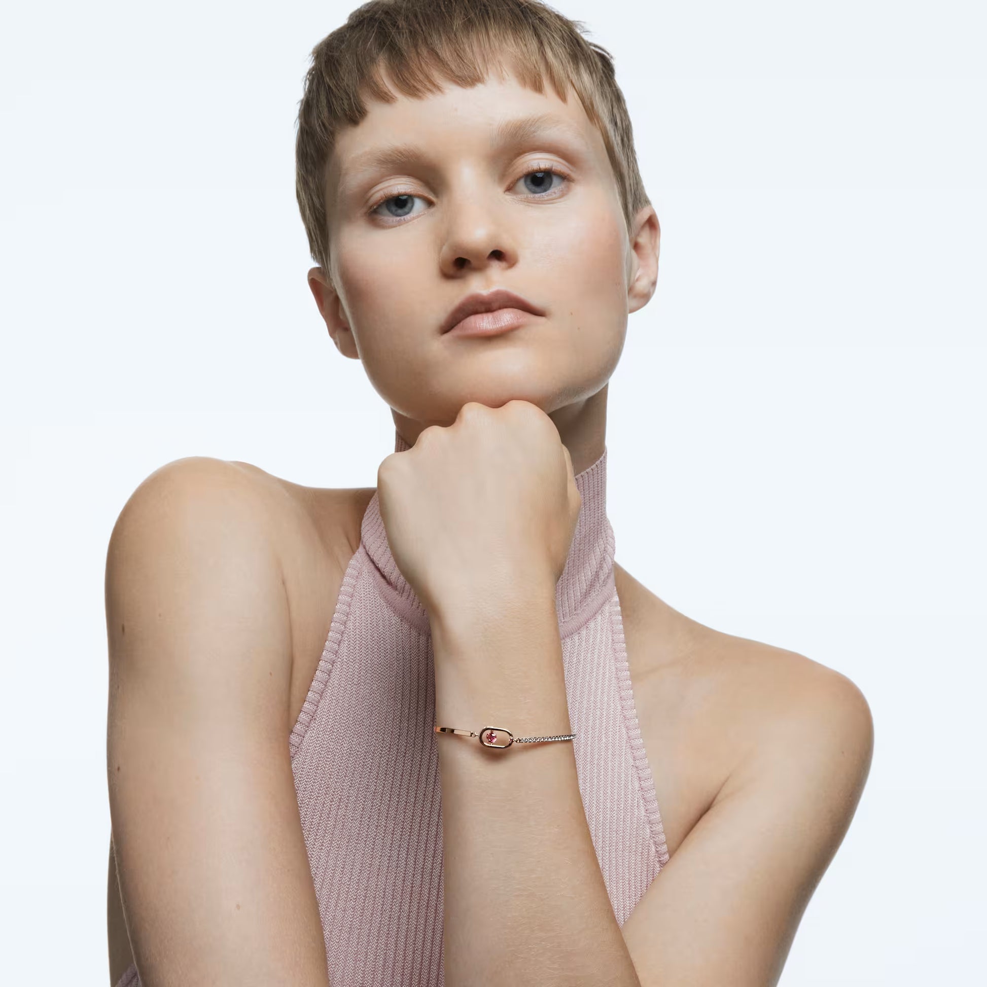 Una Bracelet, Round Cut, Oval Shape, Red, Rose Gold Tone Plated