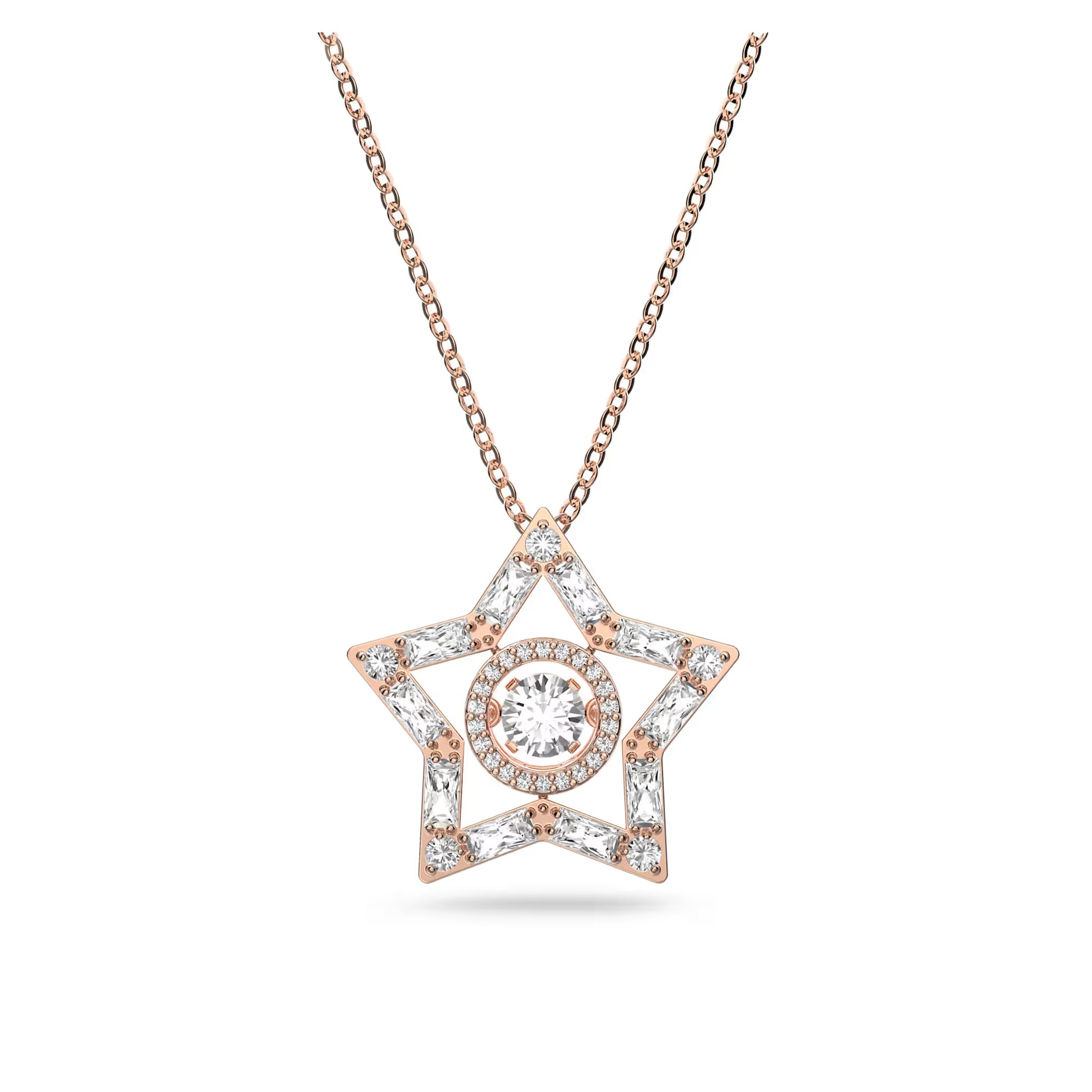 The star is a treasured Swarovski emblem, inspired by the magic of Austrian scenery, and forms the central motif of this delicate pendant. Finished with a dancing stone detail, this rose gold-tone plated necklace is a contemporary take on a rich jewelry heritage. Style yours alone, or with the matching bracelet and earrings from the Stella family. This pendant is part of the Stella family, designed by Creative Director Giovanna Engelbert for Collection II.