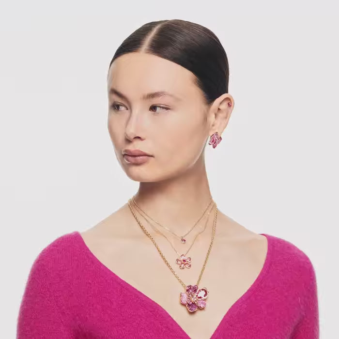 Stilla Stud Earrings, Heart, Red, Gold Tone Plated